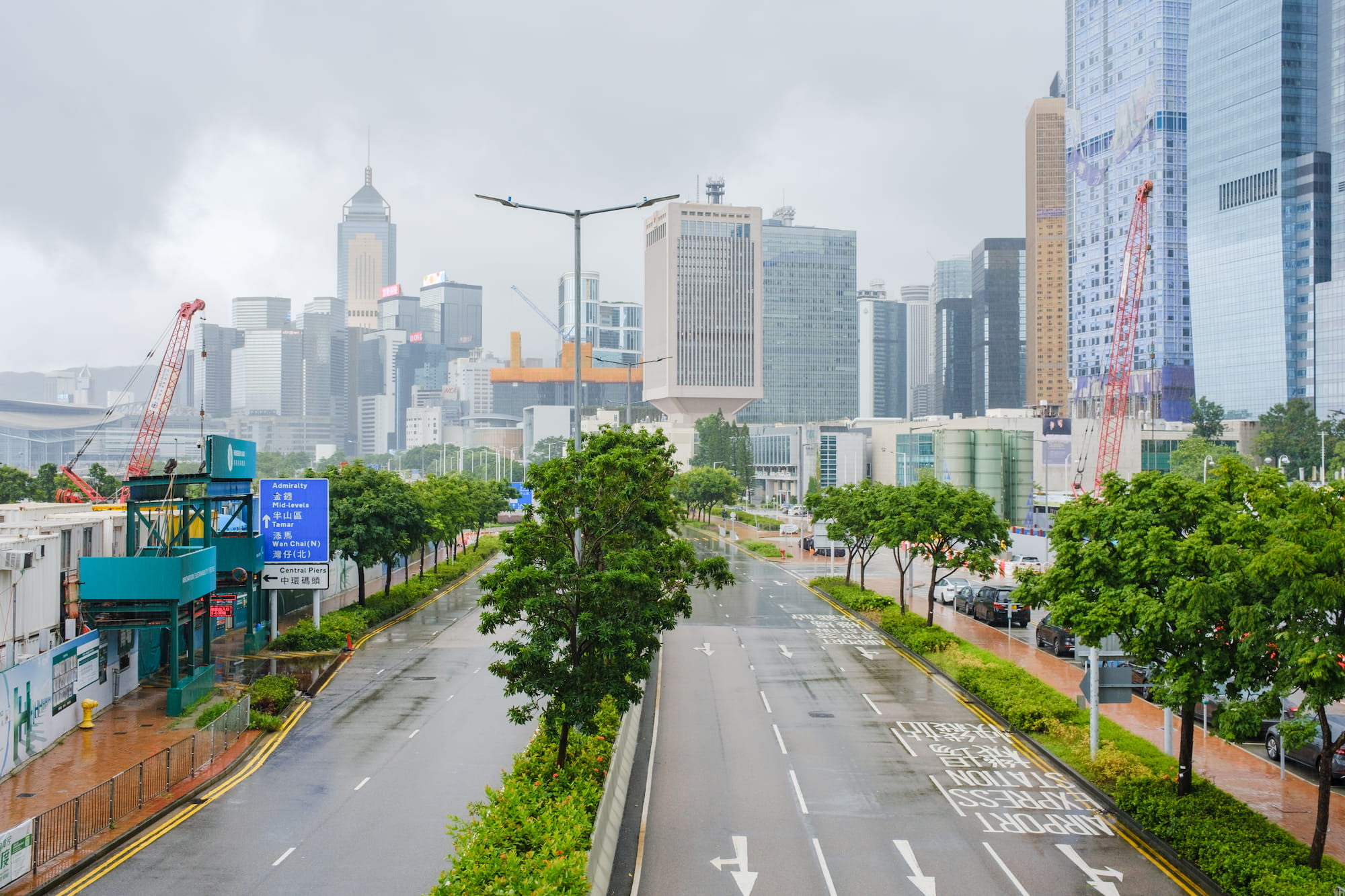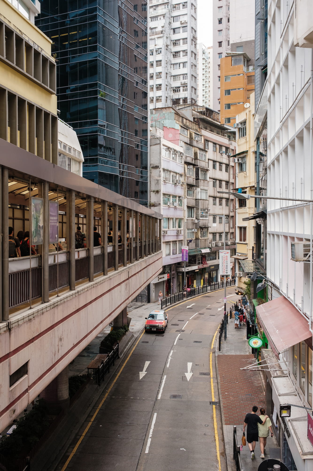 港岛这边的人行天桥通过各大商场相互连通,再碰到下雨的情况也很方便市民的出行。