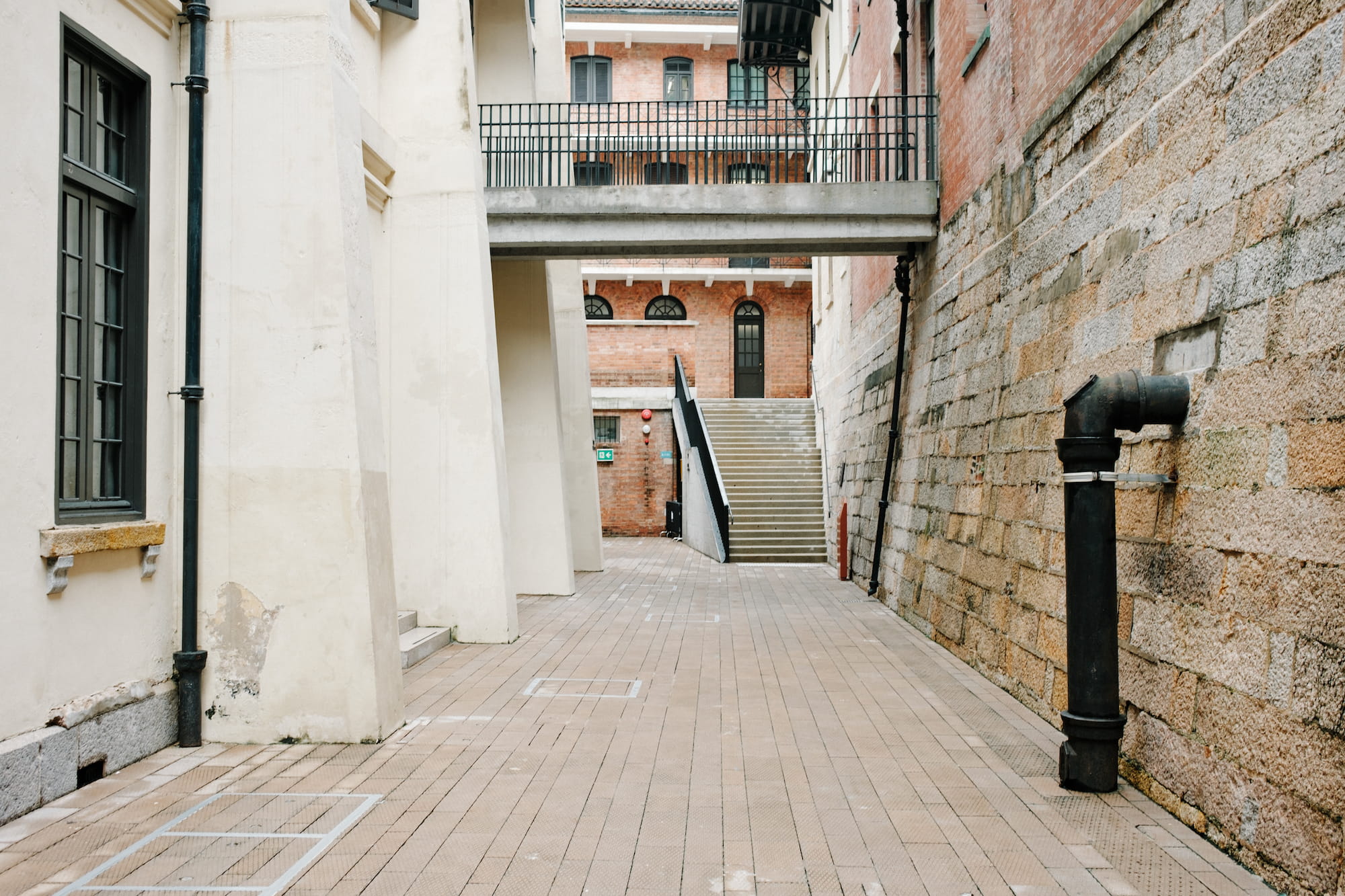 吃完饭继续沿着天桥走,我们来到了大馆。这里把以前香港中区警署以及监狱改造成了现在的旅游观光以及展览的地点。英国佬修的监狱大同小异,我在Old Melbourne Gaol和Geelong Gaol Museum都已经见识过。同样是改造监狱程博物馆,感慨一下香港这边免费而我们这边费用还不低。