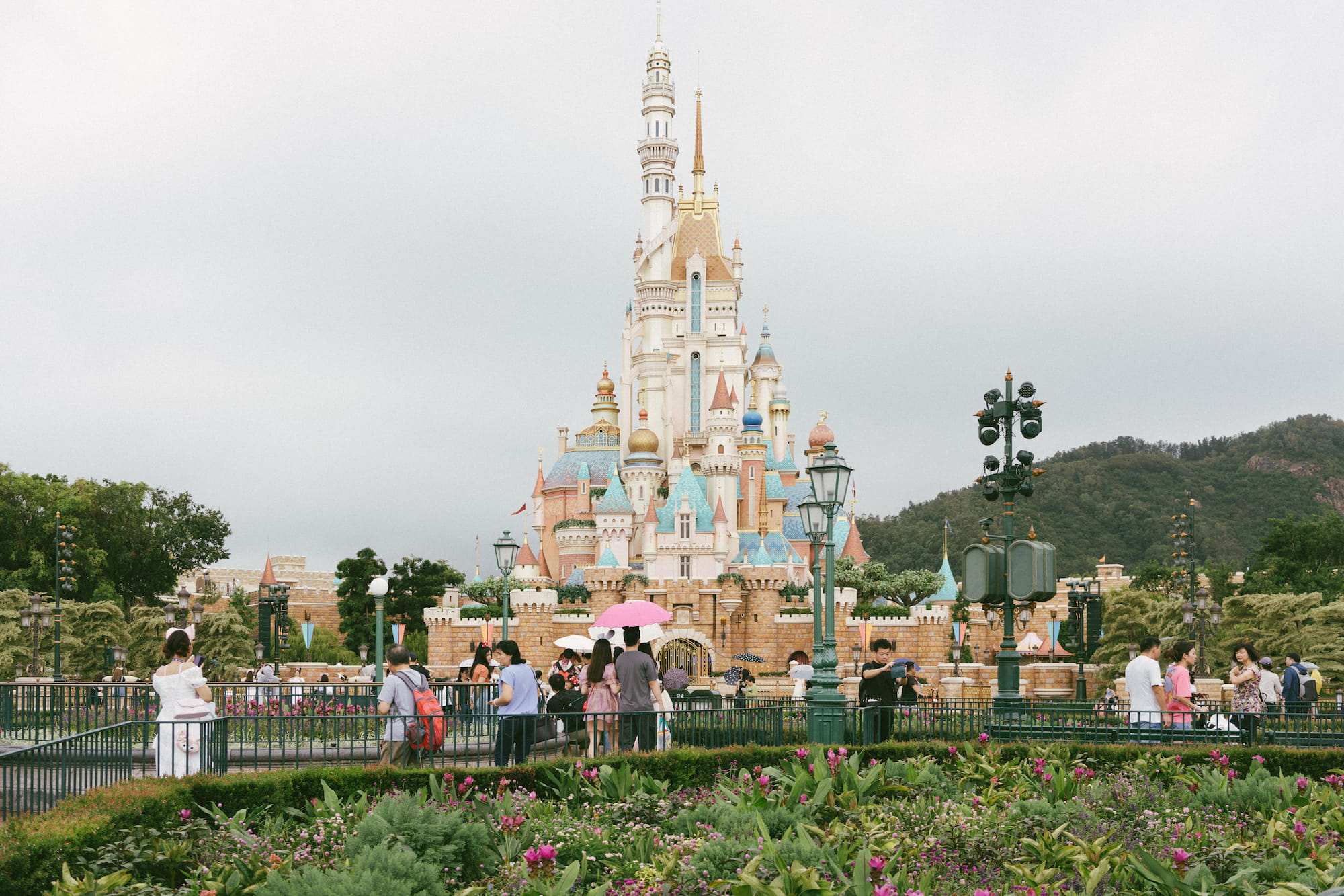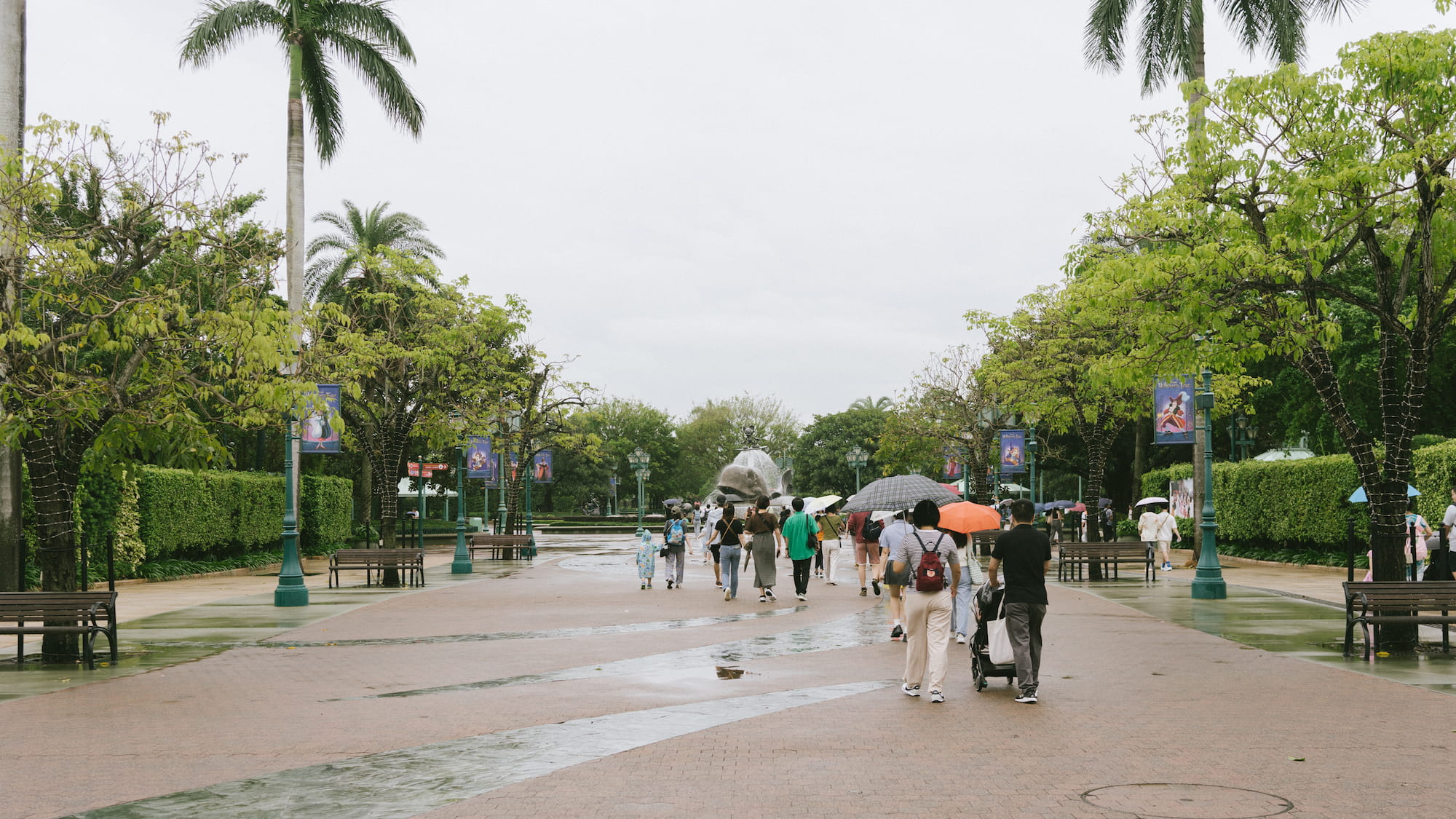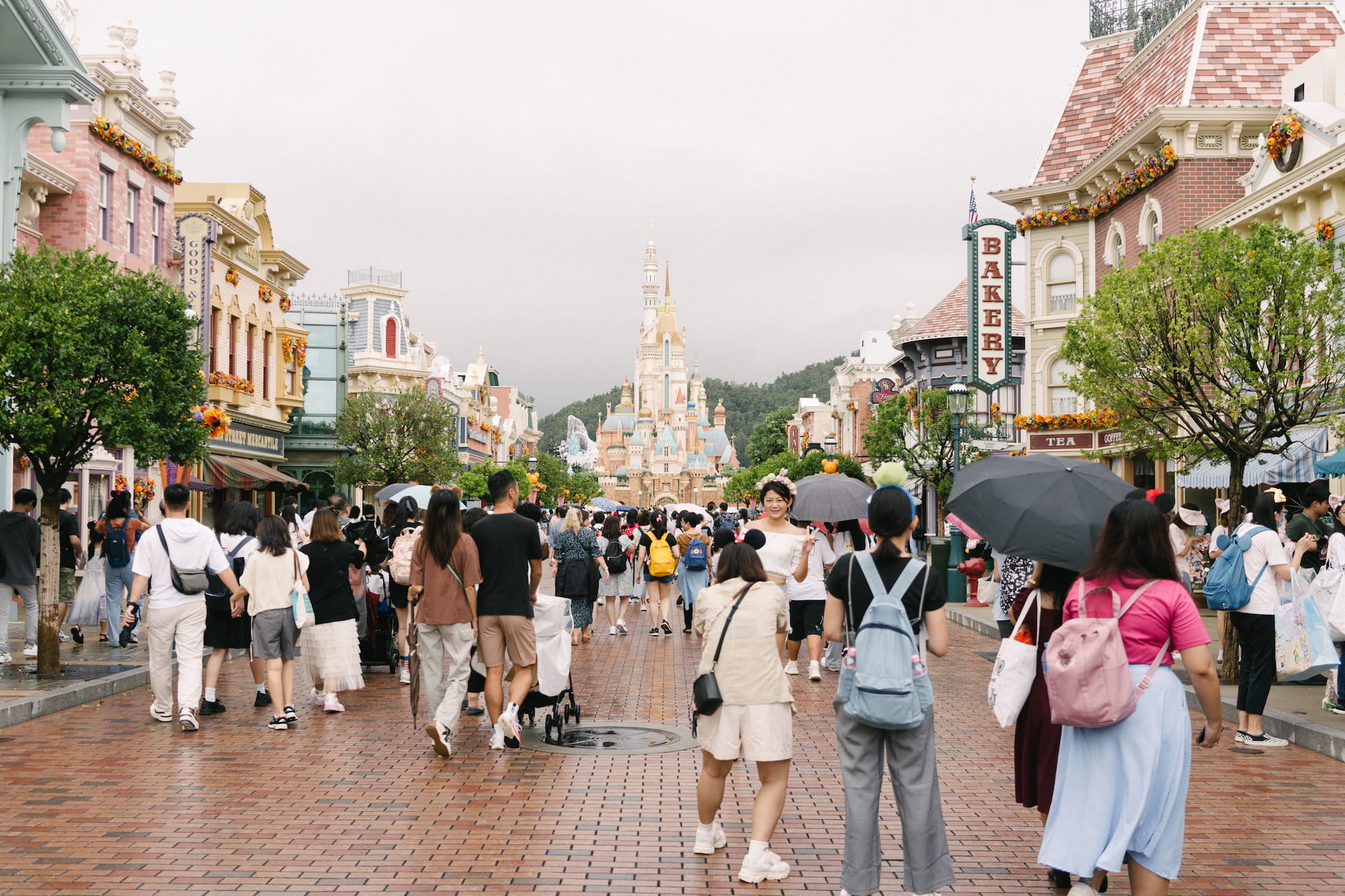 迪士尼乐园的票我们在澳洲的时候就已经通过klook买好,当时买的是两天的票,计划着飞机落地休整之后下午入园看烟花,第二天再玩迪士尼的其他项目。天不遂人愿,第一天不仅不能休整,迪士尼乐园更是因为黑雨的关系不开门。留给我们在香港的时候不多,第二天即使还下着靡靡细雨,我们也只能硬着头皮入园。