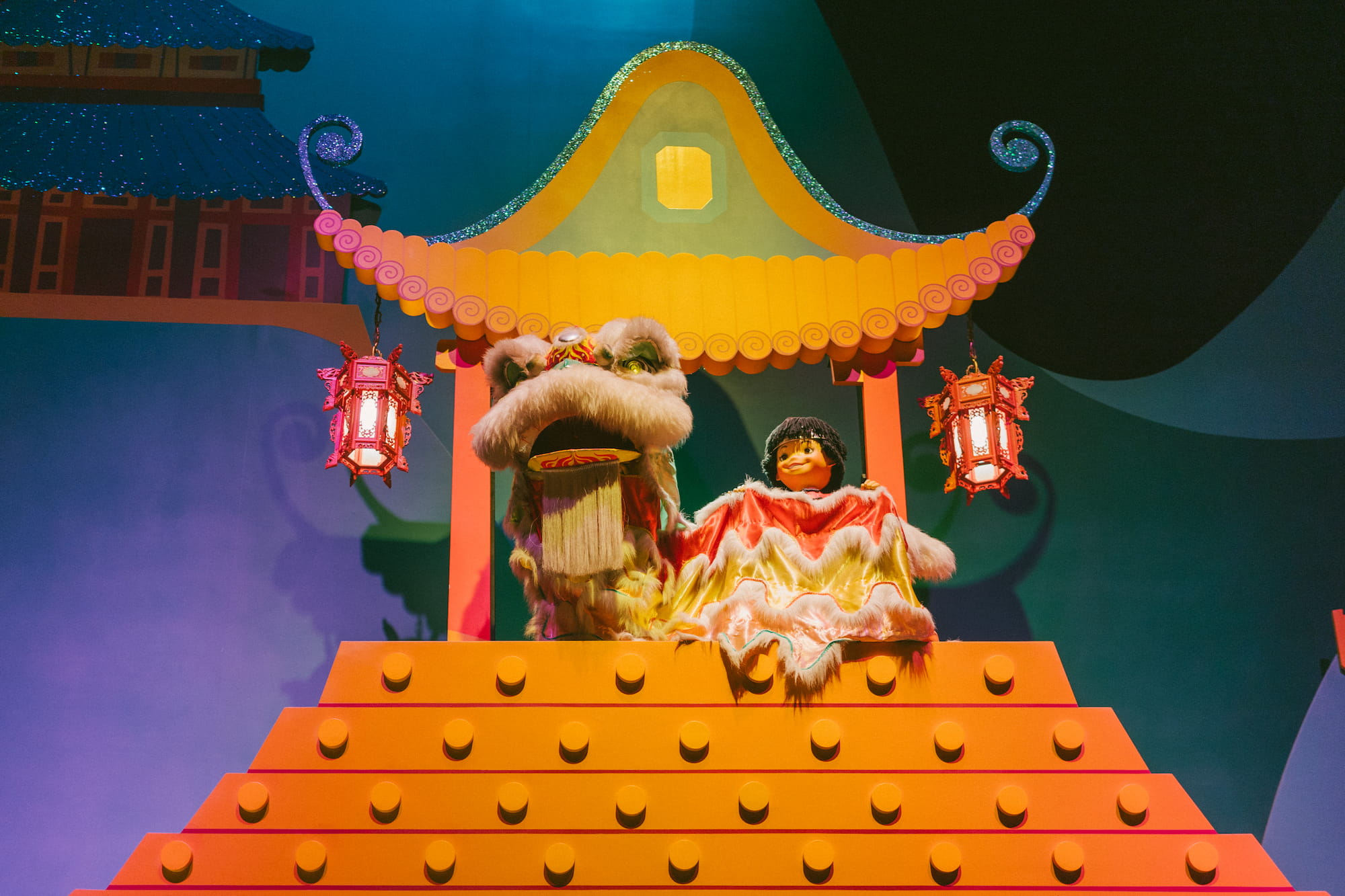 这个小城堡是坐着小船在室内看各种娃娃,说时候有点无趣……