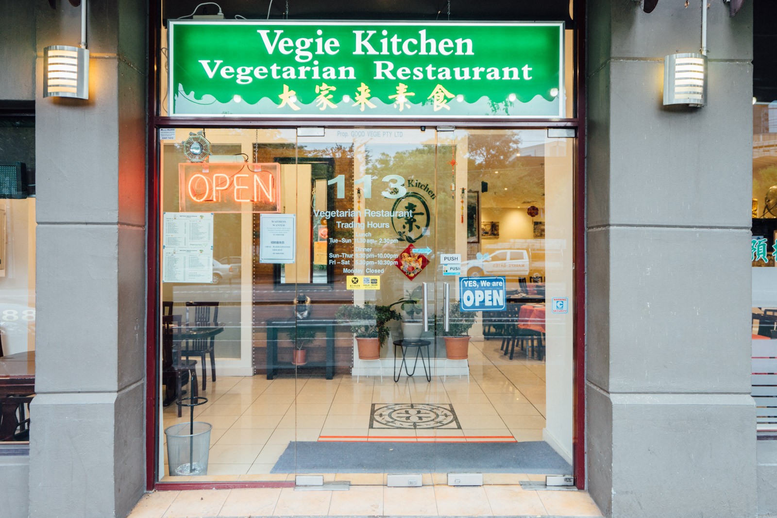 周边还算是好停车,但是停车费稍贵,$5.5一个小时。后来跟老板聊才知道如果是过来吃正餐的话可以停他们的车库,不过要提前打好招呼才会有人开门。这家店我刚来的时候还叫Enlightened Cuisine,后来突然有一天换成了现在的名字,虽说老板厨子还是原班人马。我猜可能是因为Enlightened不能很好地说明他们的斋菜属性所以换了一个更直白的名字。想不到它的中文名字竟然比英文还要直白也是没谁了……😅