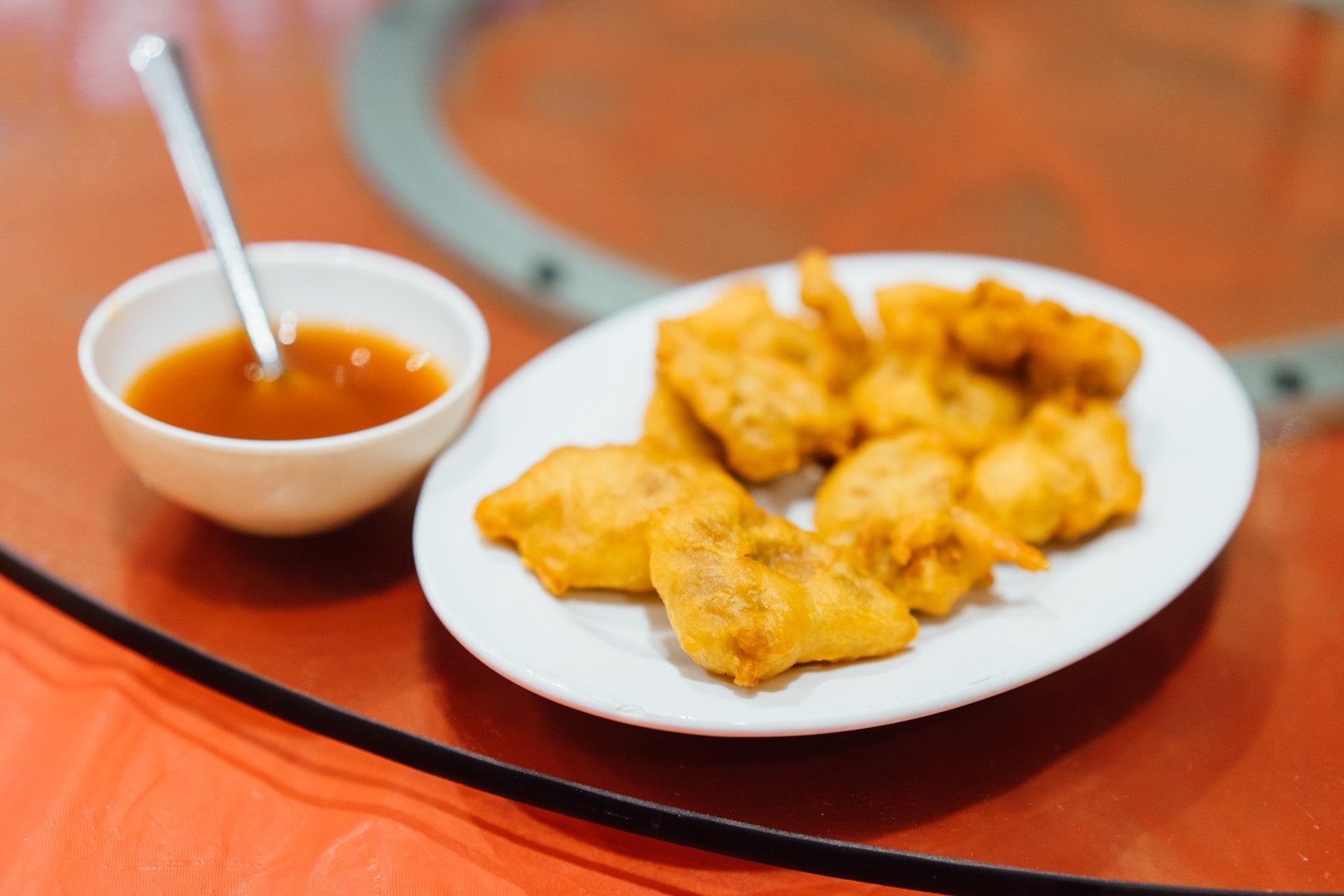 废话就不多说了,直接上菜吧。首先上来的是side dishes,春卷,斋烧鹅和盐酥鸡。斋烧鹅我以前就已经吃过,应该是把腐皮炸酥之后搭配甜酸酱来吃。非常非常非常的香!盐酥鸡味道中规中矩,春卷的外皮炸的非常酥脆,里面的味道因为没有肉的原因所以在香味上就差了一点意思。