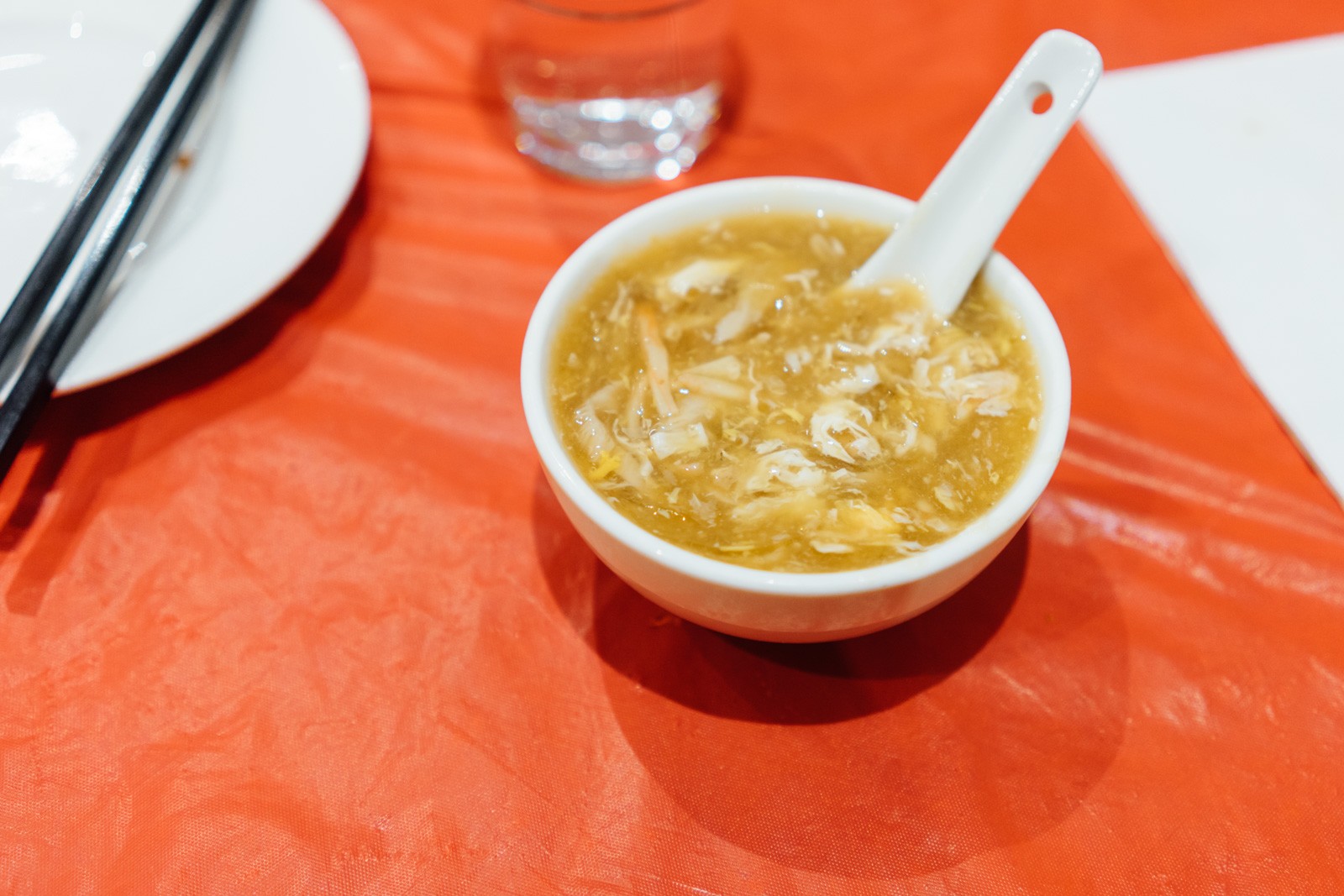 吃完油炸的,接下来端上来的是鱼翅汤。这个鱼翅汤做的真的很妙,我已经记不清楚其具体的味道,但却清晰的记得他们用的“鱼翅”的口感跟真的鱼翅非常相似。这个口感很难用语言来形容,非要说的话就是比没有煮够的粉丝多一份韧劲和弹性,但是又不会让人觉得硬的咬不动。