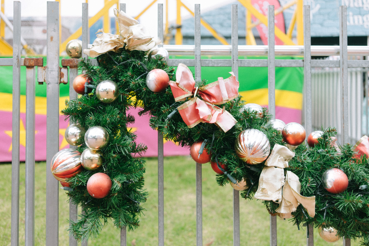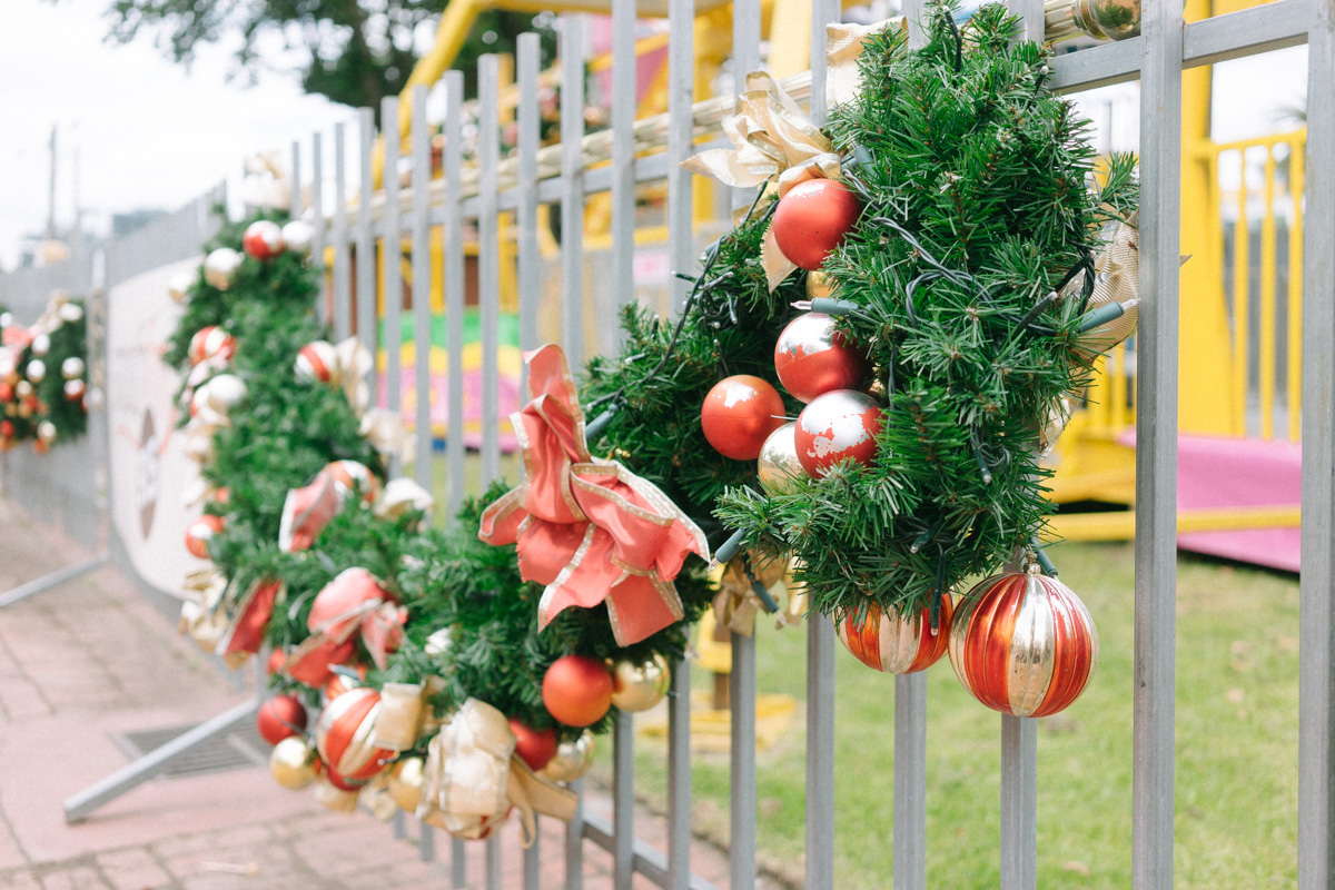 门口的栅栏上挂着圣诞的装饰,不过可以看出东西已经用过一段不短的时间,有些球已经掉漆严重。
