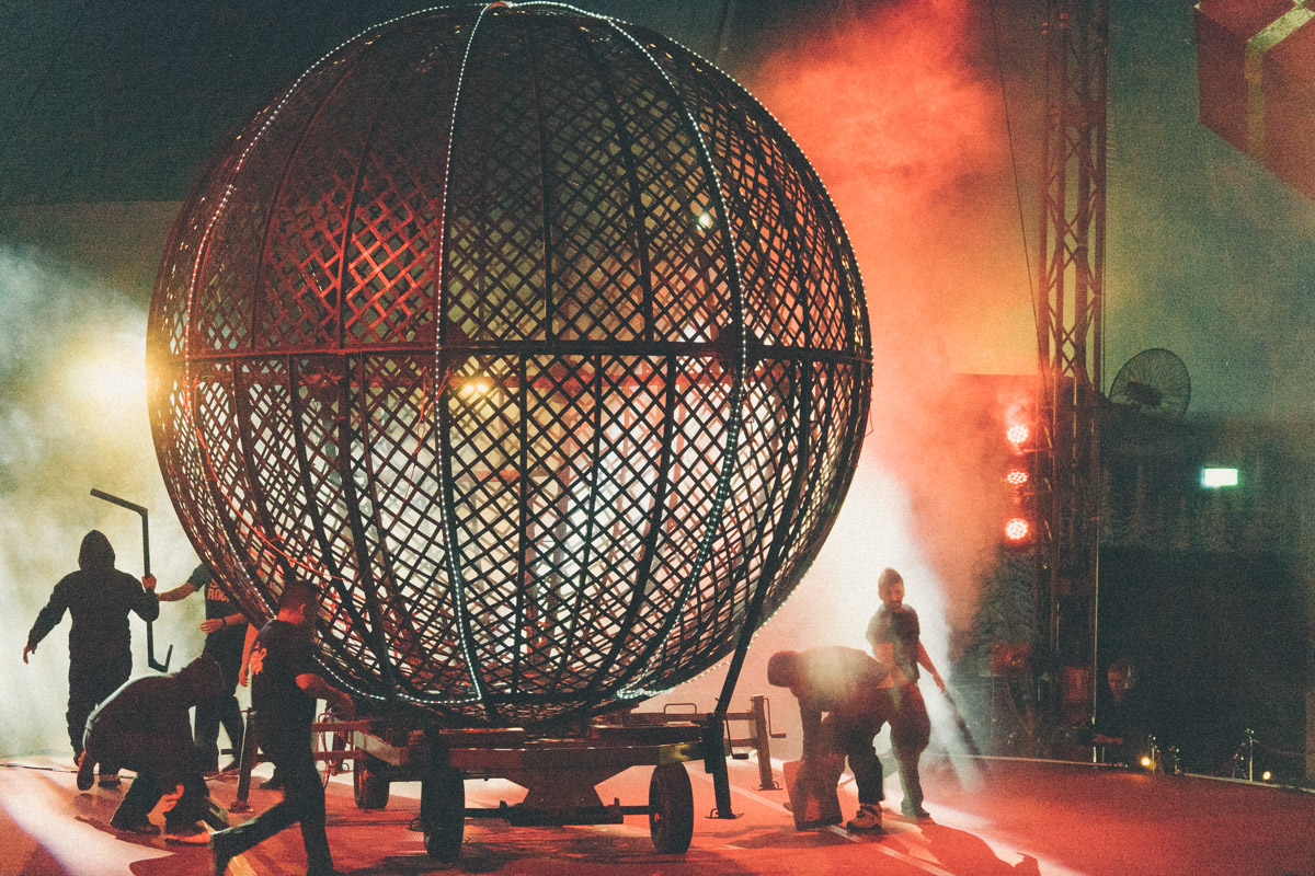 最后抬上来了一个“神秘的金属球”。我真的看不出来这是要在里面开摩托