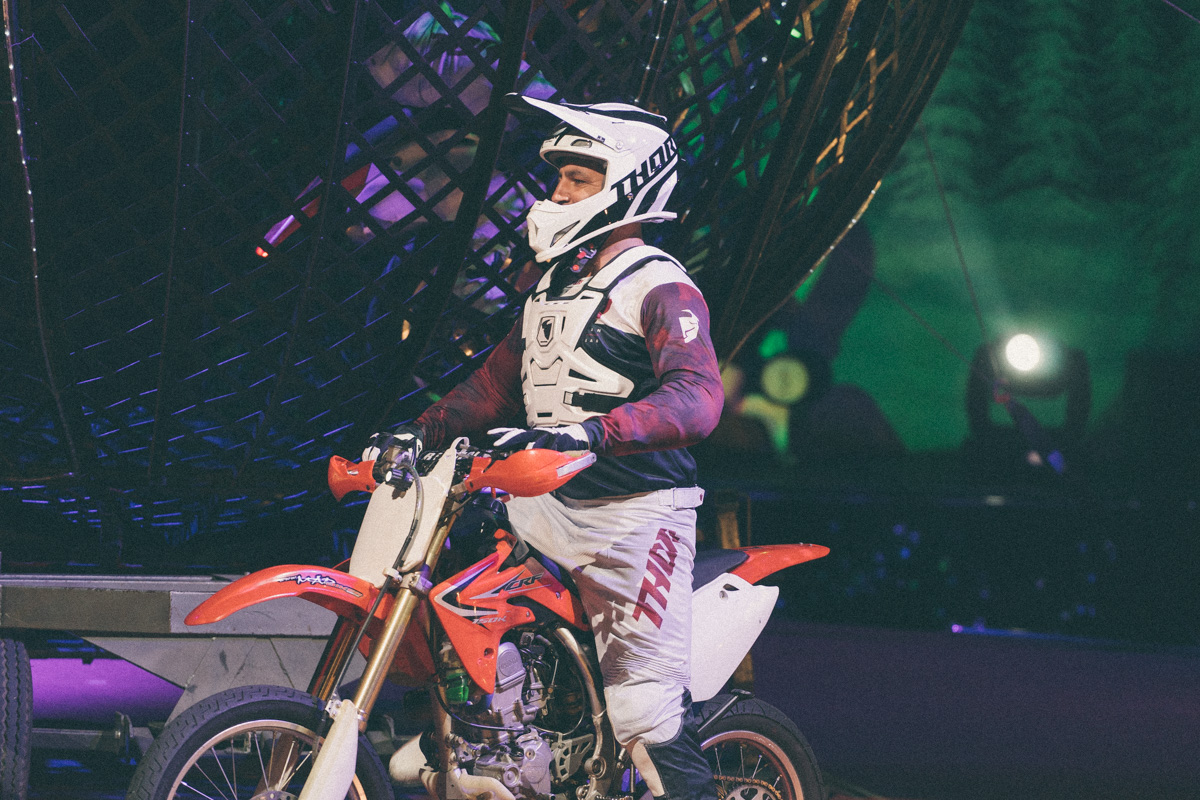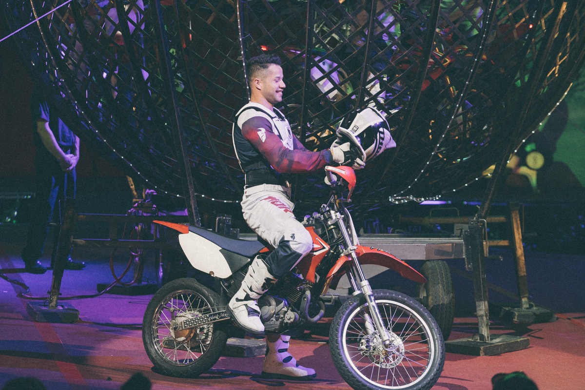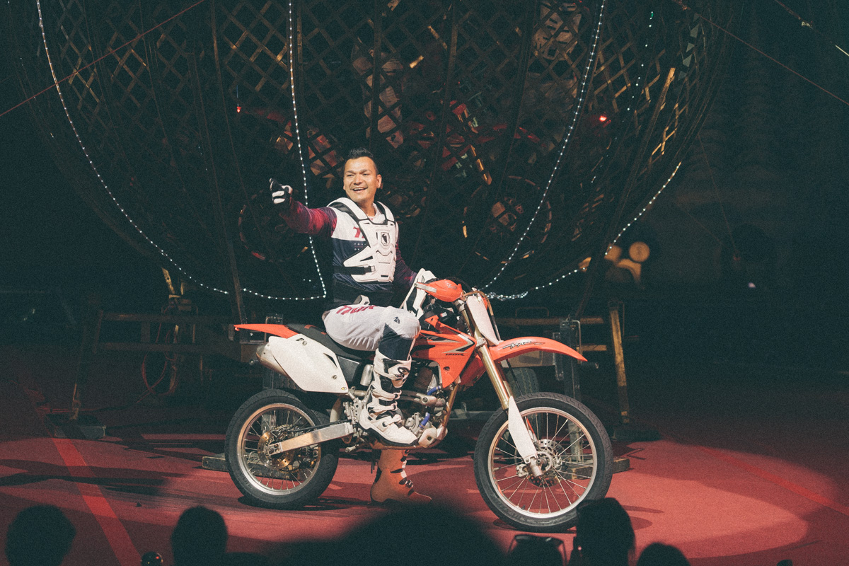 铁球里面骑摩托已经很精彩,让人意外的是最后竟然同时有四辆摩托在同时在铁球里面跑。