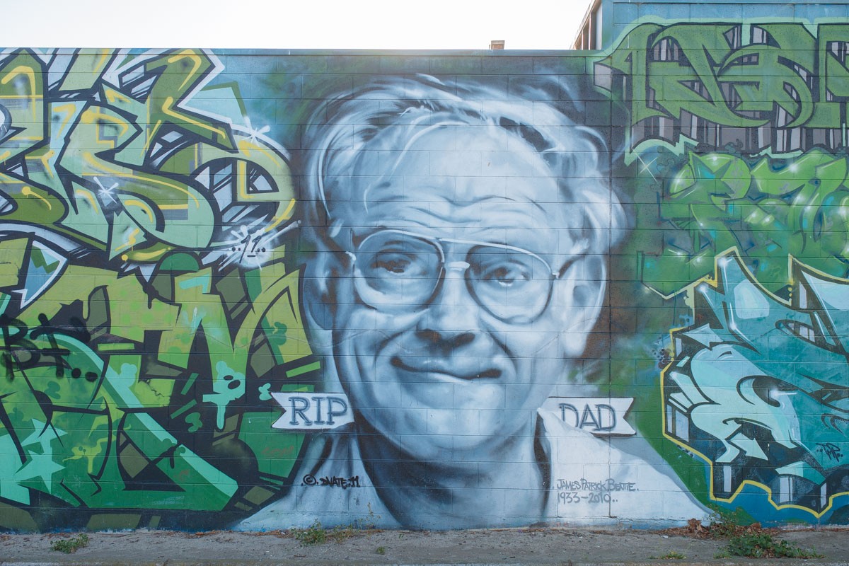 可以看到这家店就在Richmond火车站对面的T字路口,停好车在停车场就看到很多涂鸦。这一副吸引了我的注意力。