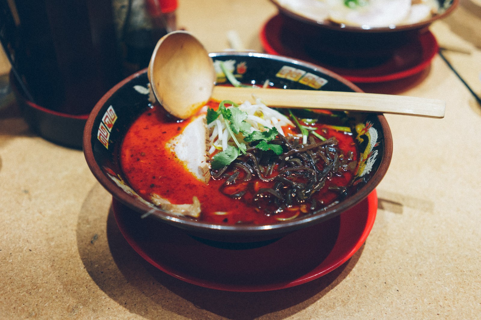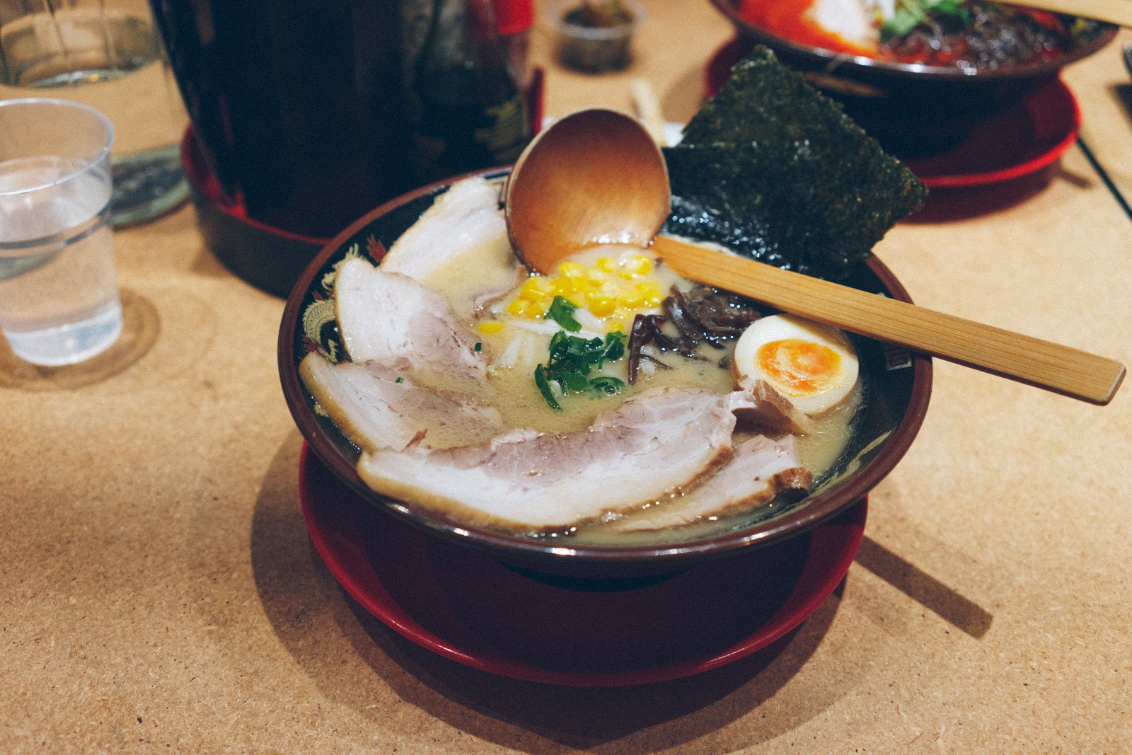 首先上场的是Tonkotsu Ramen White,这里我加了一份叉烧(3片)。日式拉面将就的是汤头,这个猪骨汤的味道中规中矩,不算很浓郁的类型,我个人是比较喜欢有点韧劲的面条,这家的面条的口感我觉得还算不错,叉烧切成了长条形,入口即化,好评。总的来说这个面我可以给3.5星。