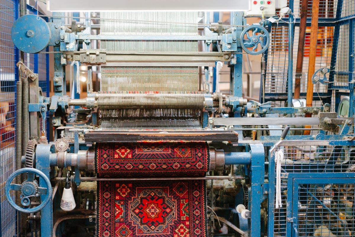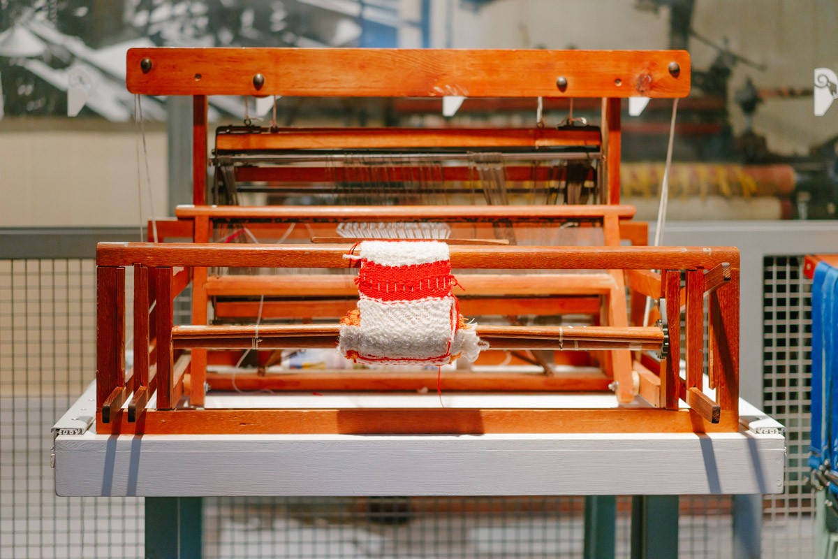玩完了乐高,我们上楼去参观正主-如何把生产羊毛制品。在过道中间,放着一架编织地毯的机器。跟使用这个机器的老爷爷聊了一下,他跟我说大概一个小时可以自动织一条地毯出来(这个效率有点……咳咳)