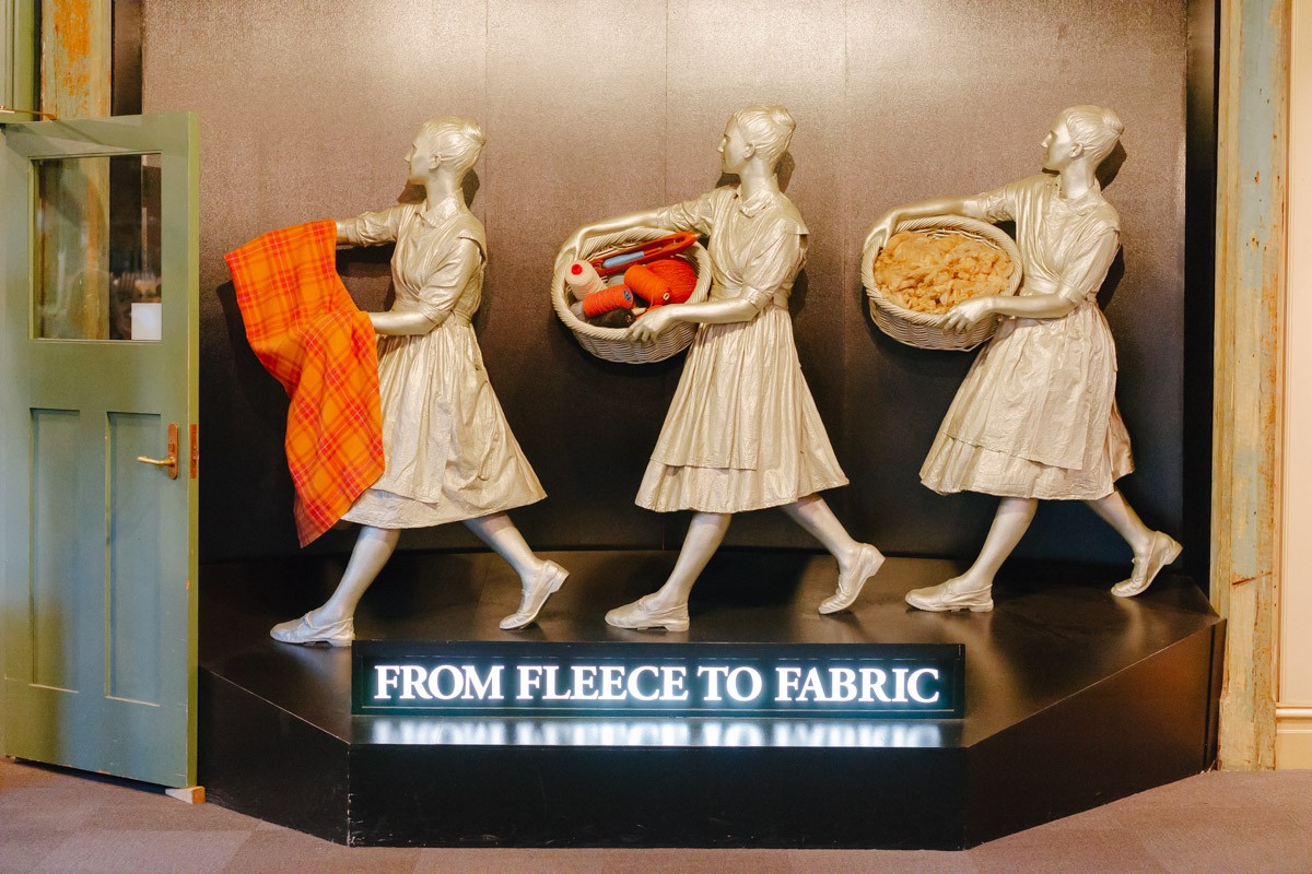 继续往上走 ,到了二楼之后(first Floor)这边分两边,一边叫“The wool harvest ”展示的是养羊和剃羊毛的过程。另外一边叫“From fleece to fabric ”,展示的如何把羊毛通过不同的机器变成最终的成品。