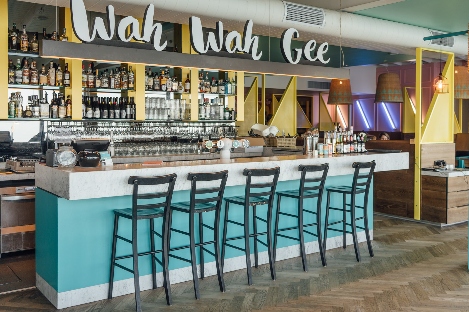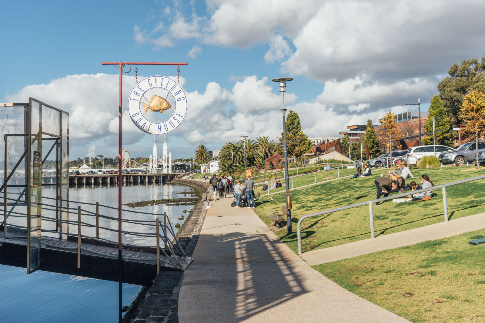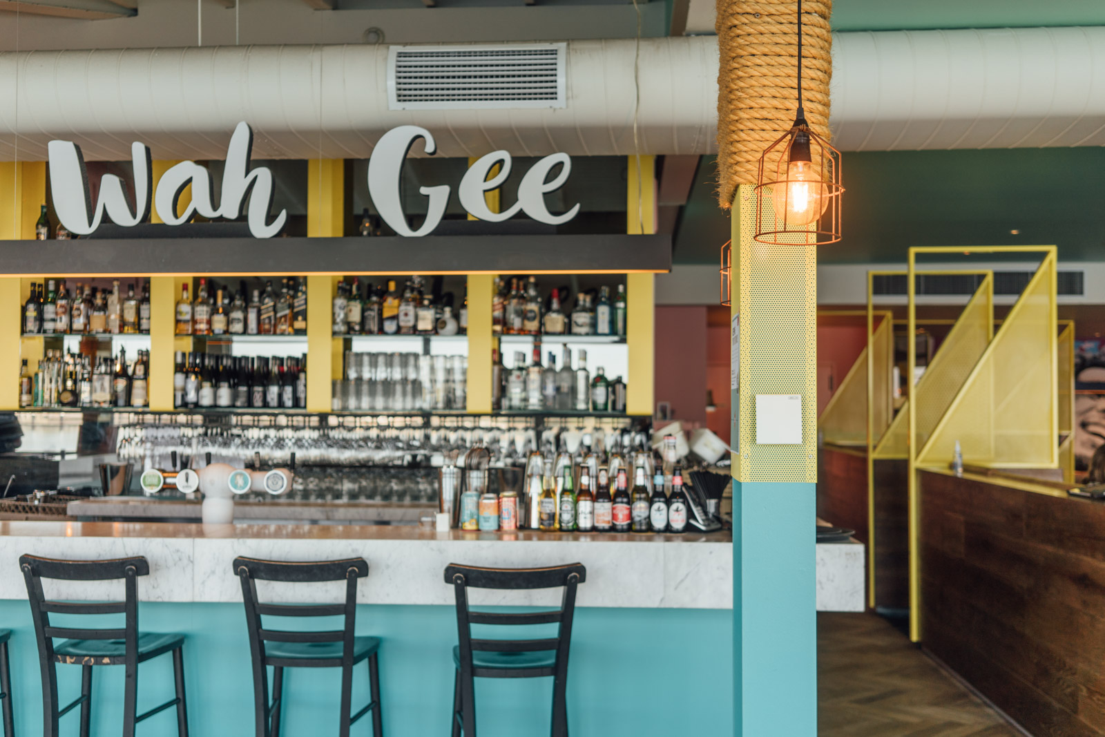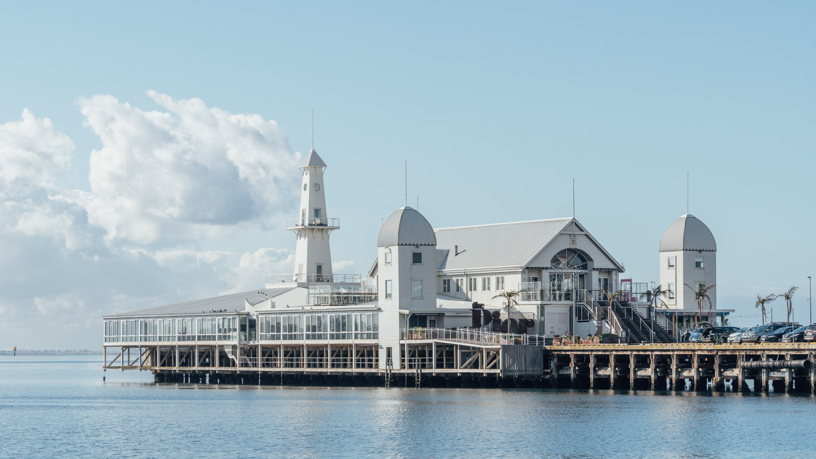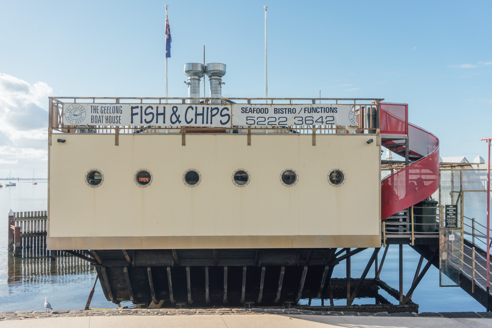 我们这次来是度假的,除了下午会去骑马之外没有什么特定的目的地。等大家都起床之后,我们开车回到Geelong市区,来到了海边的一家Fusion泰餐Wah Wah Gee。这家餐厅就在昨天停车的海边的Jetty尽头,门口停车位众多。我们停好车往餐厅里走去,在Jetty看海那是真的没得说。