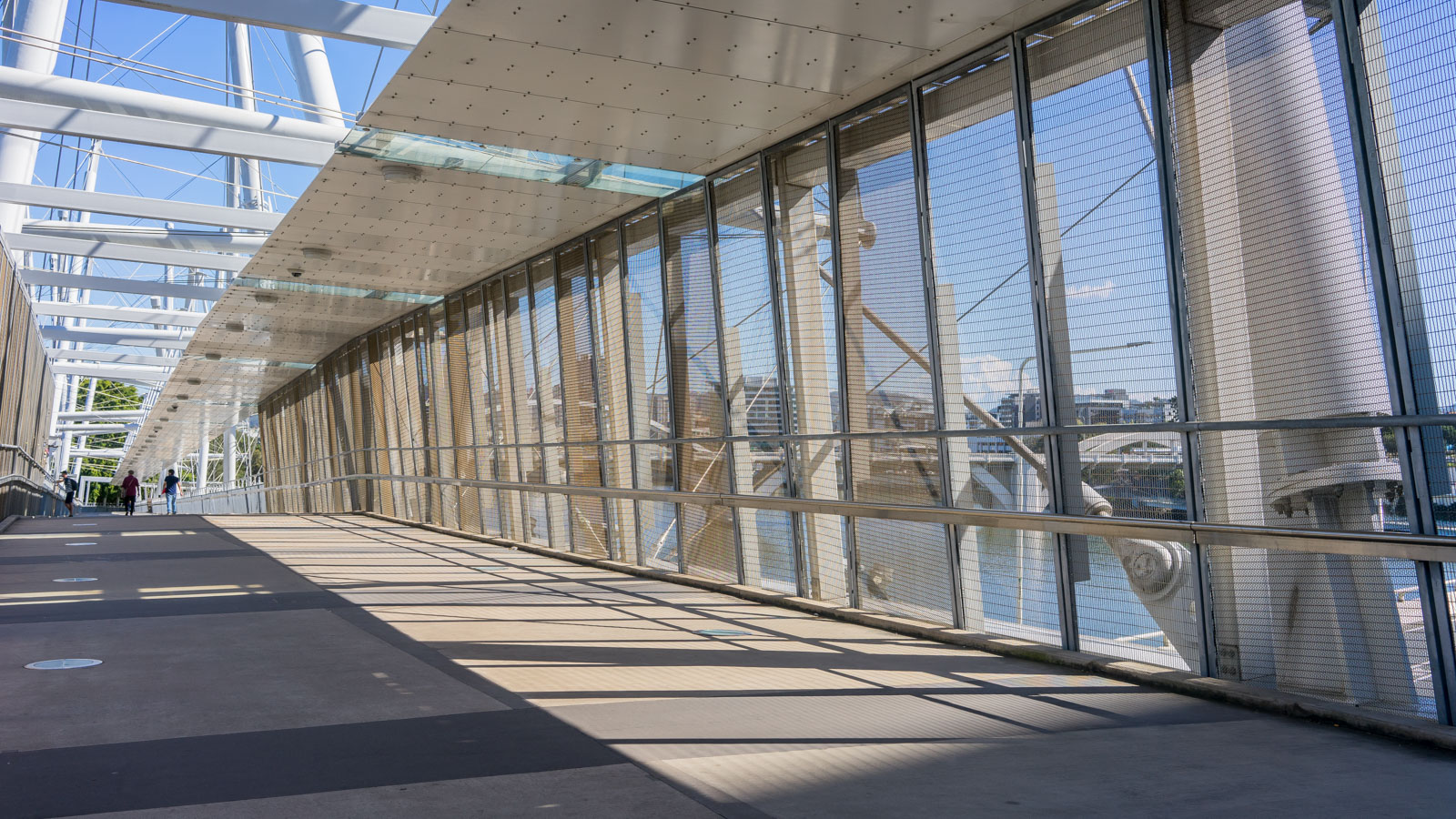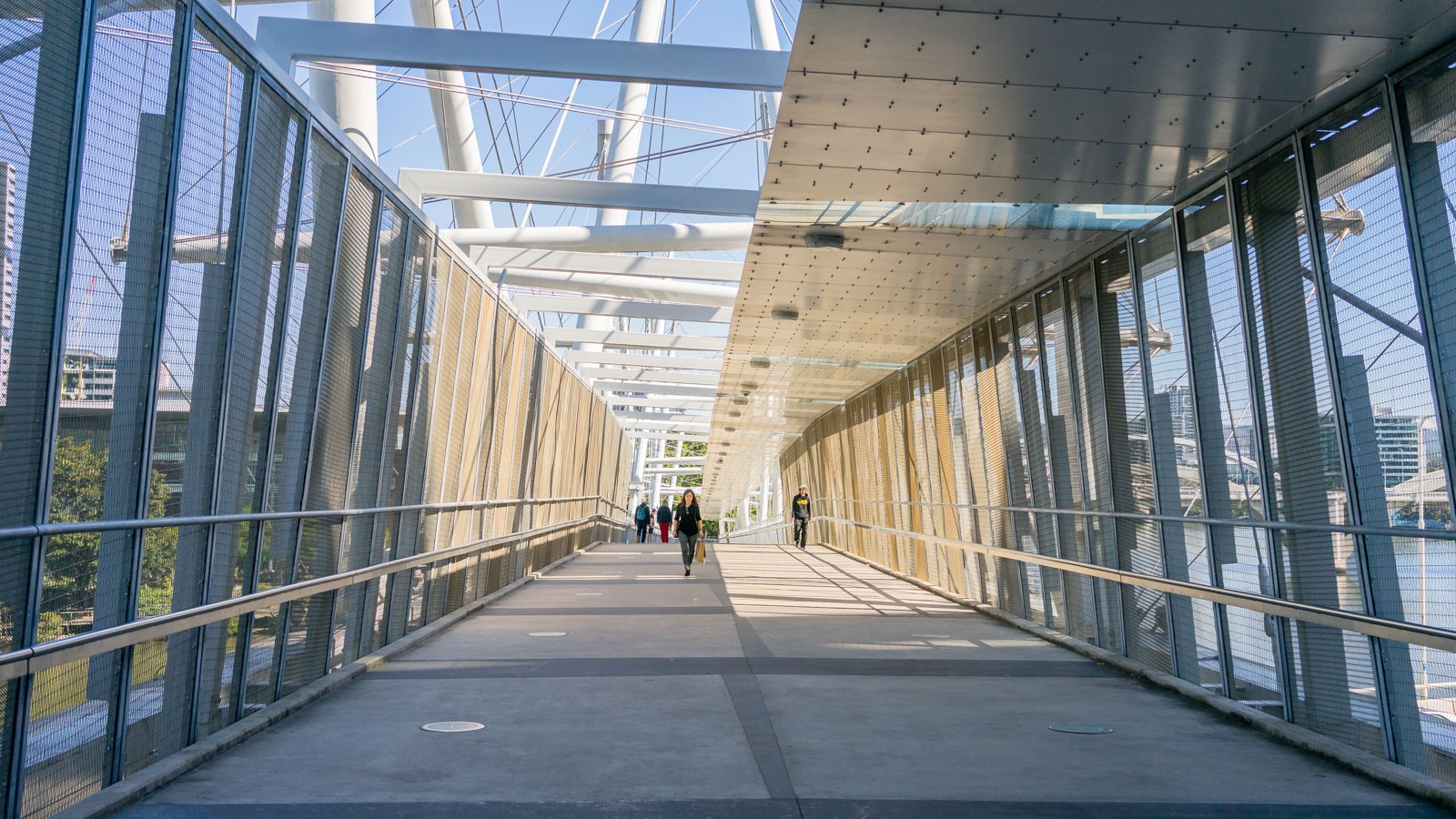 接下来就准备过河了。在Brisbane River上面有很多座桥,我没想到的是他们竟然专门为行人修建了一座步道桥Kurilpa Bridge