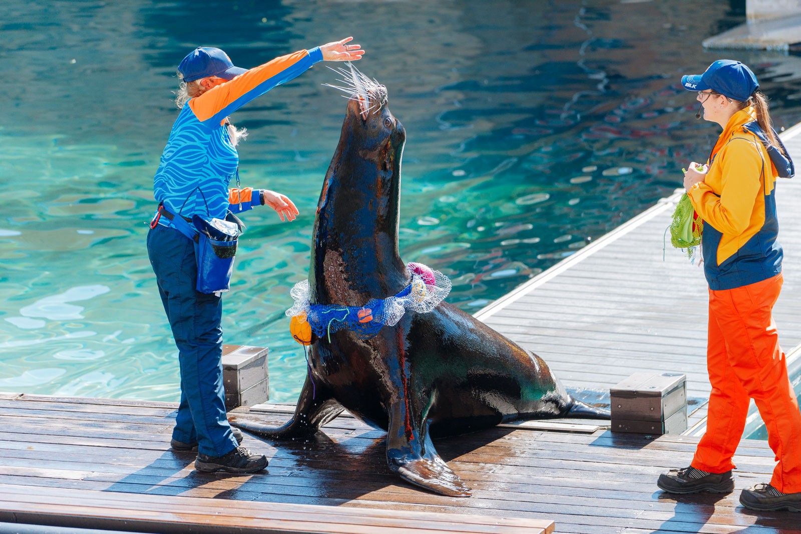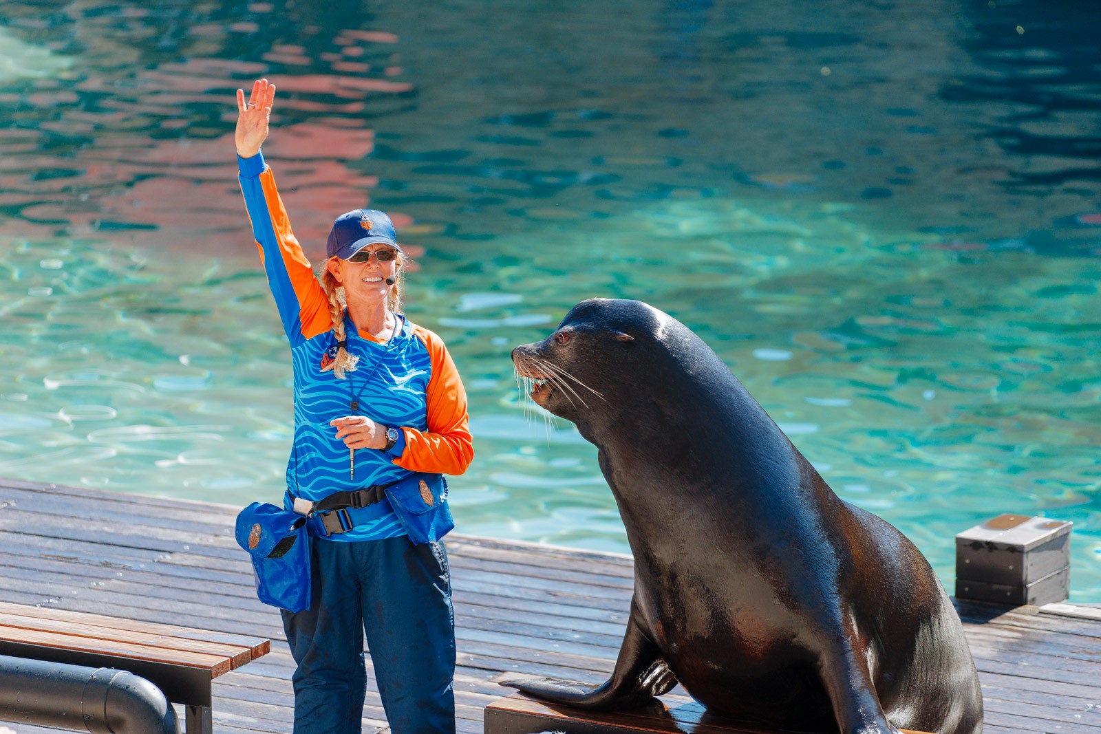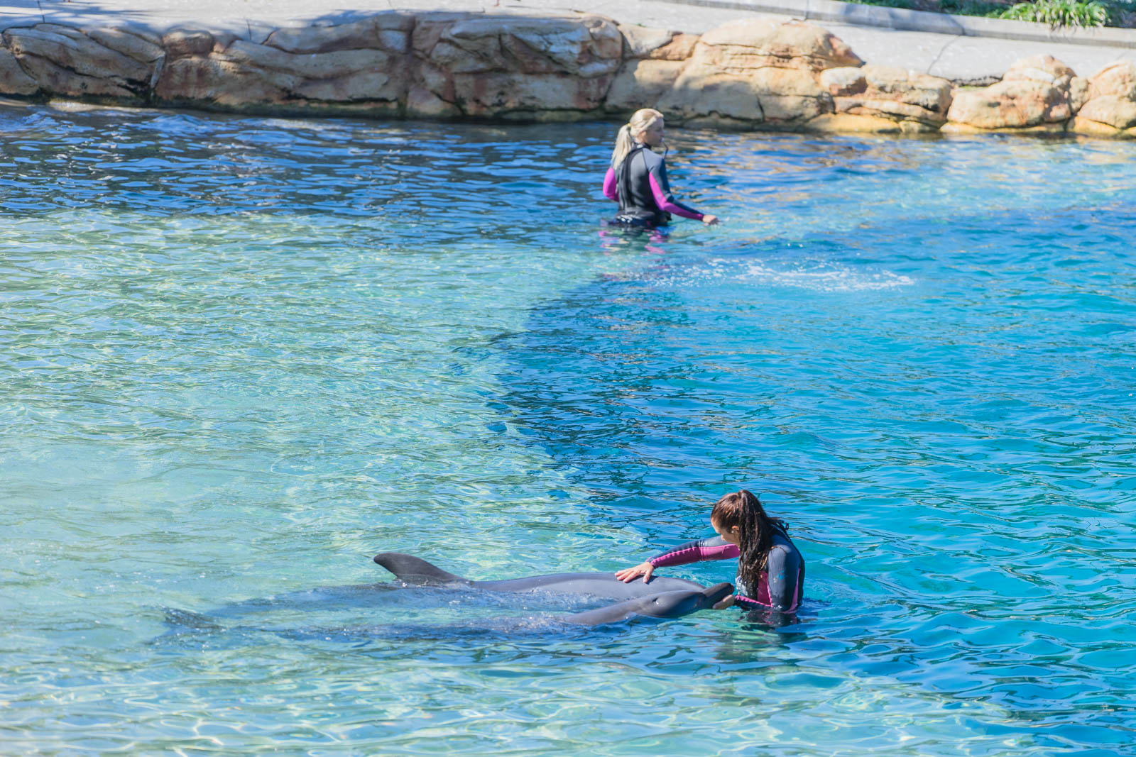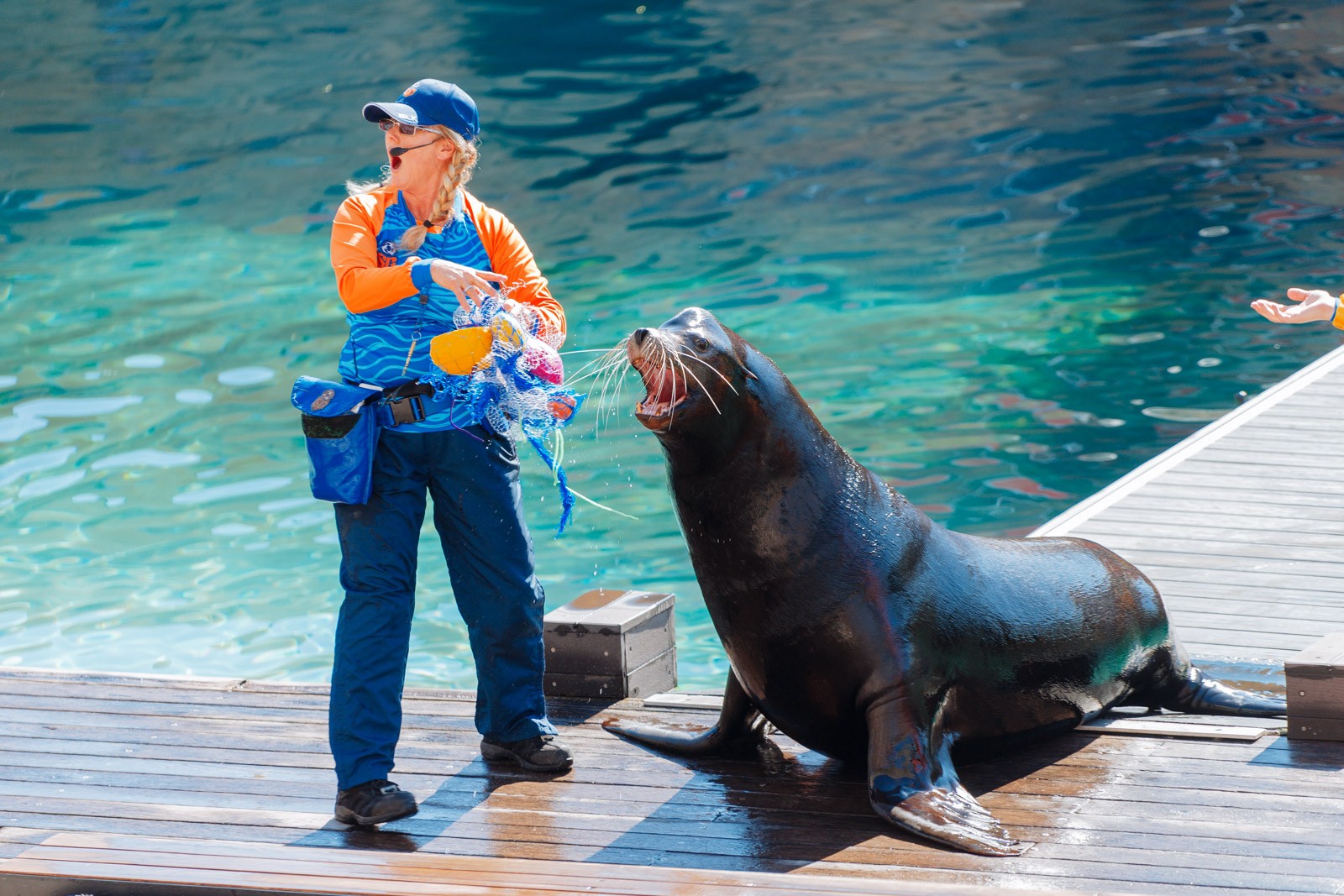正好11点15分就是 Affinity Dolphin Presentation,我们赶紧进入场馆找好位子,等着海豚表演的开始。