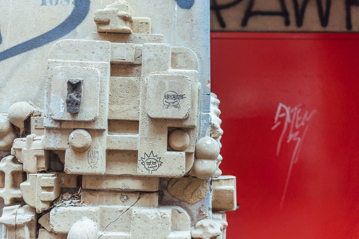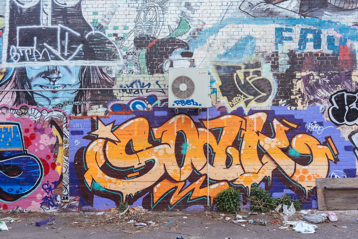 拿着咖啡我们开始出发。第一个去的巷子就是QVM附近的一条小巷。这条后巷虽然Graffiti不错不过到处都是垃圾……也就不奇怪为什么没有名字了……