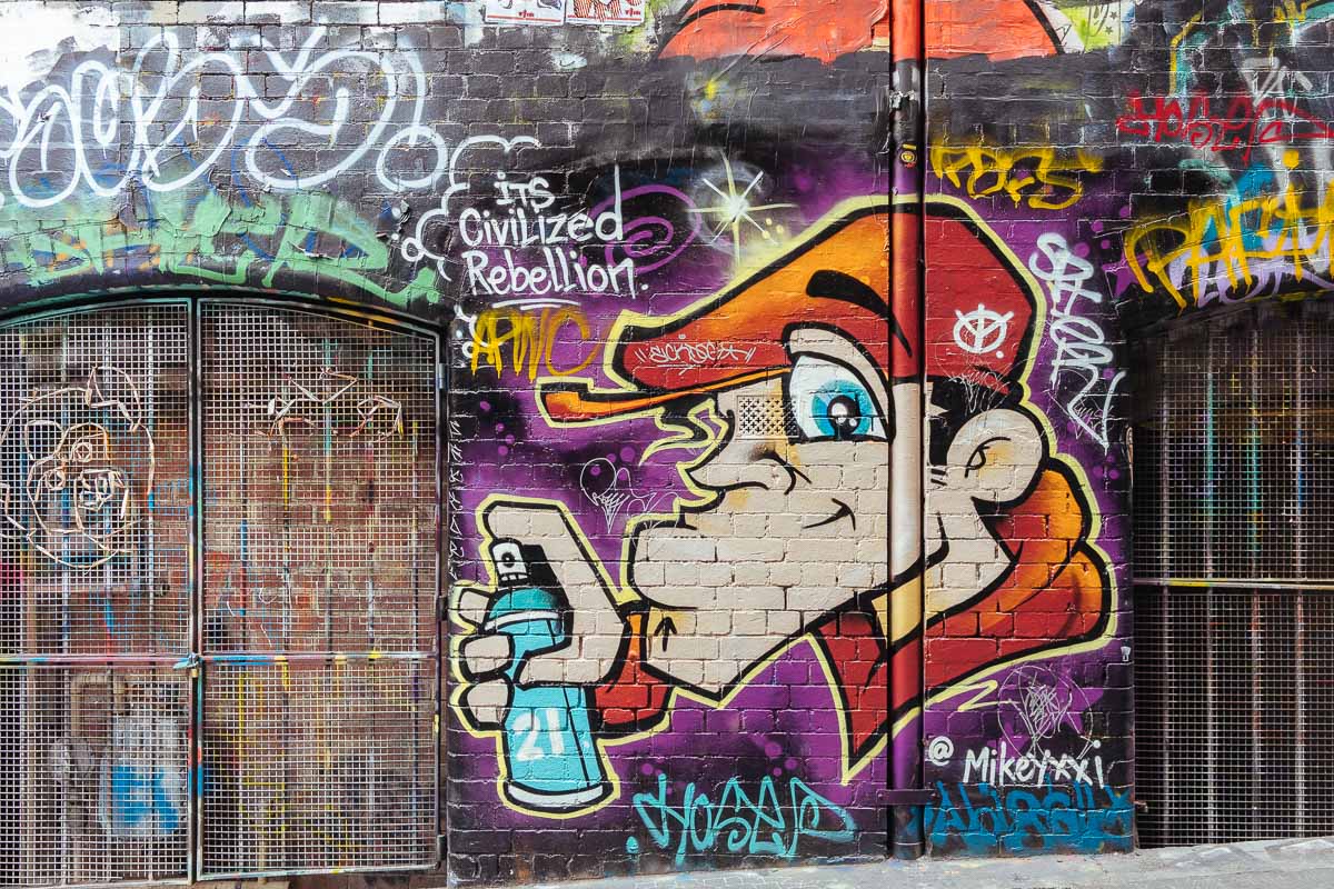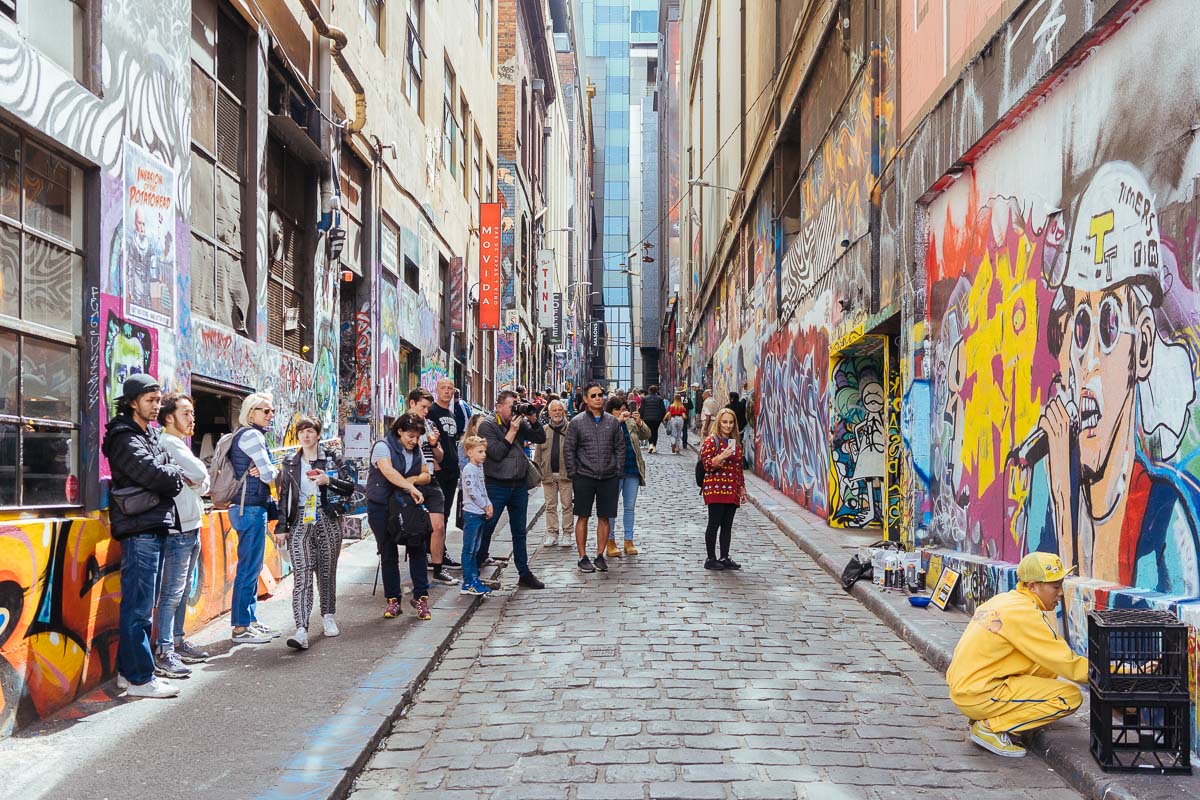 行程最后的小巷我们来到了著名的Hosier Lane。没走几步就看到一个homeless静静地躺在这里,身边穿梭着来自世界各地熙熙攘攘的游客在这里拍照打卡,没有一个人停下他们的脚步看这个homeless一眼,仿佛他们的世界在这条小巷里面变成了平行空间,你有你烦恼,我有我大闹,互不干扰,这种强烈的对比只有身在其中才能感受一二。