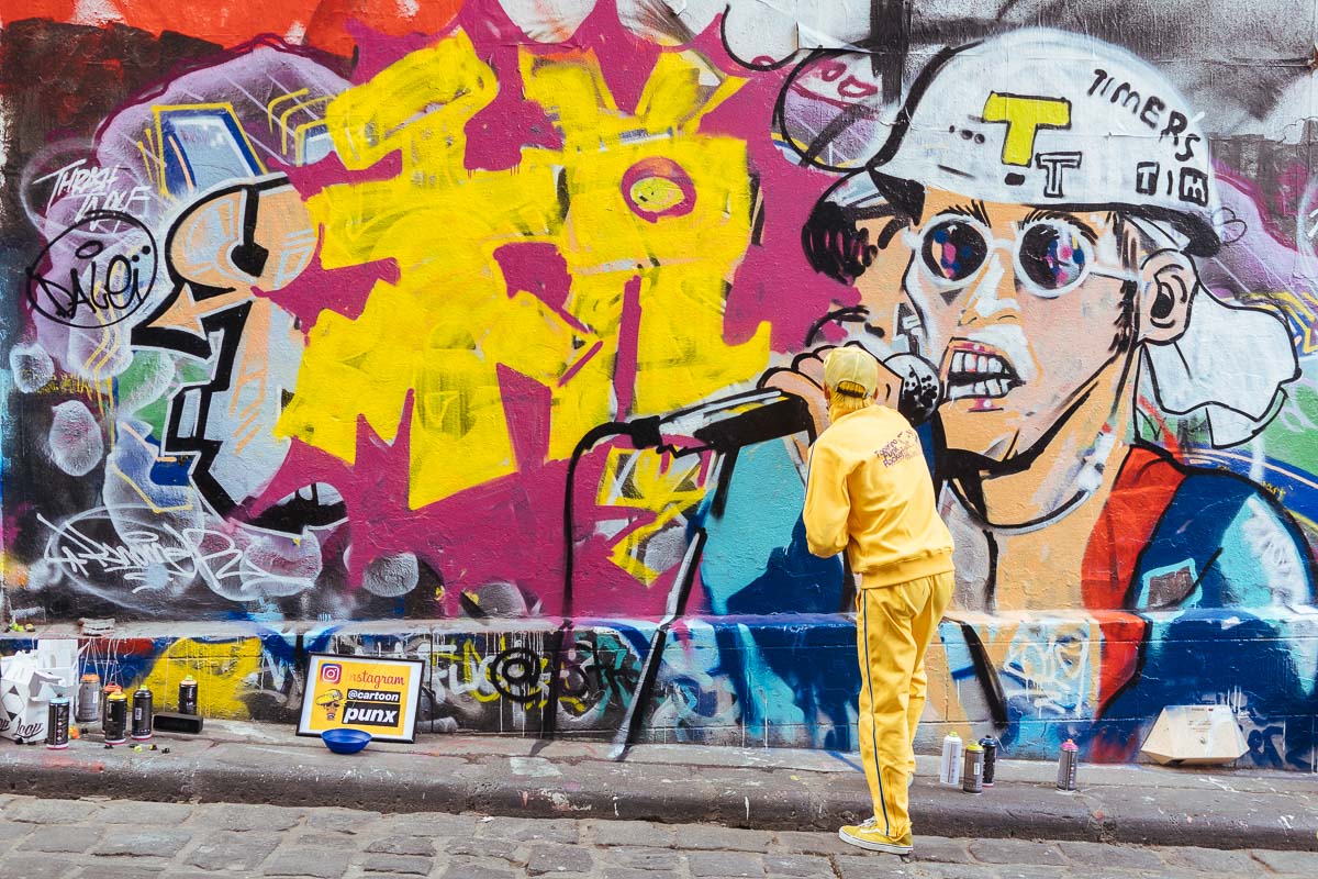 来到出口处想不到可以看到一个日本小哥正在作画中。很想知道在Hosier Lane作画是否需要申请,或者如何申请license来画。
