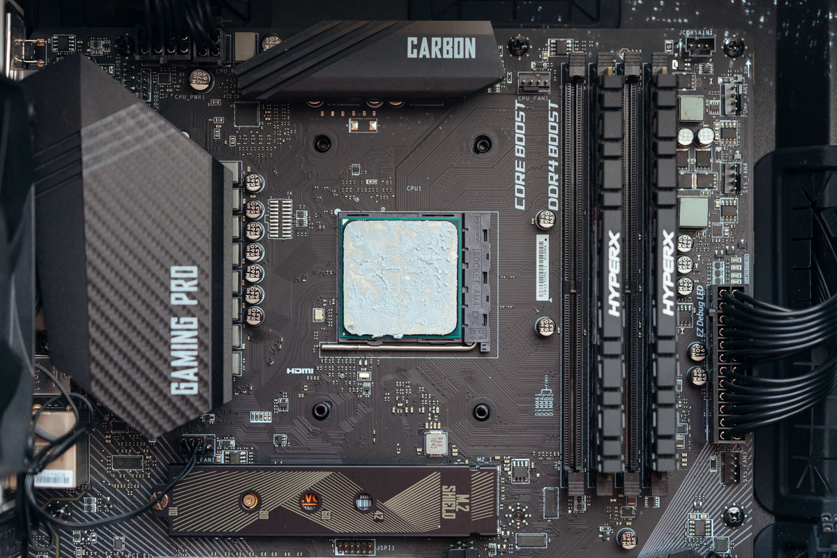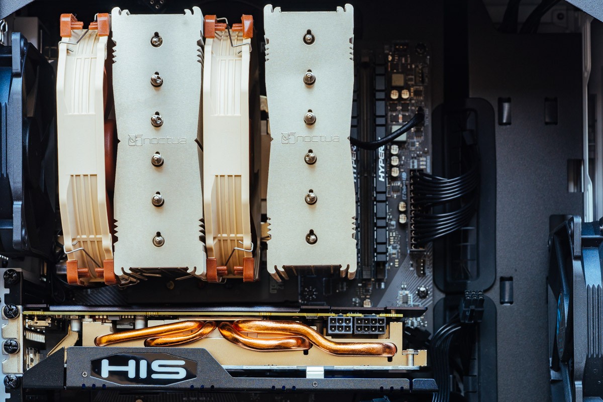 本来我是想把第二个风扇放到右边,但是内存的高度导致了风扇会突出一部分而盖不上盖子。最后选择放在左边VRM的散热上面。这样虽然也会突出来一块不过至少玻璃板是可以盖上了。