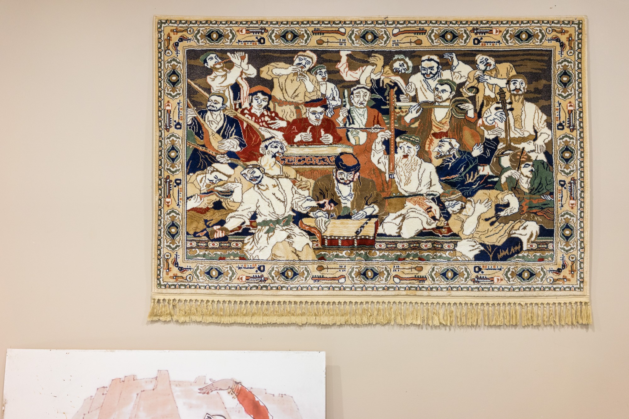 只有墙上挂着的毛毯画作才显现出一点新疆的味道。