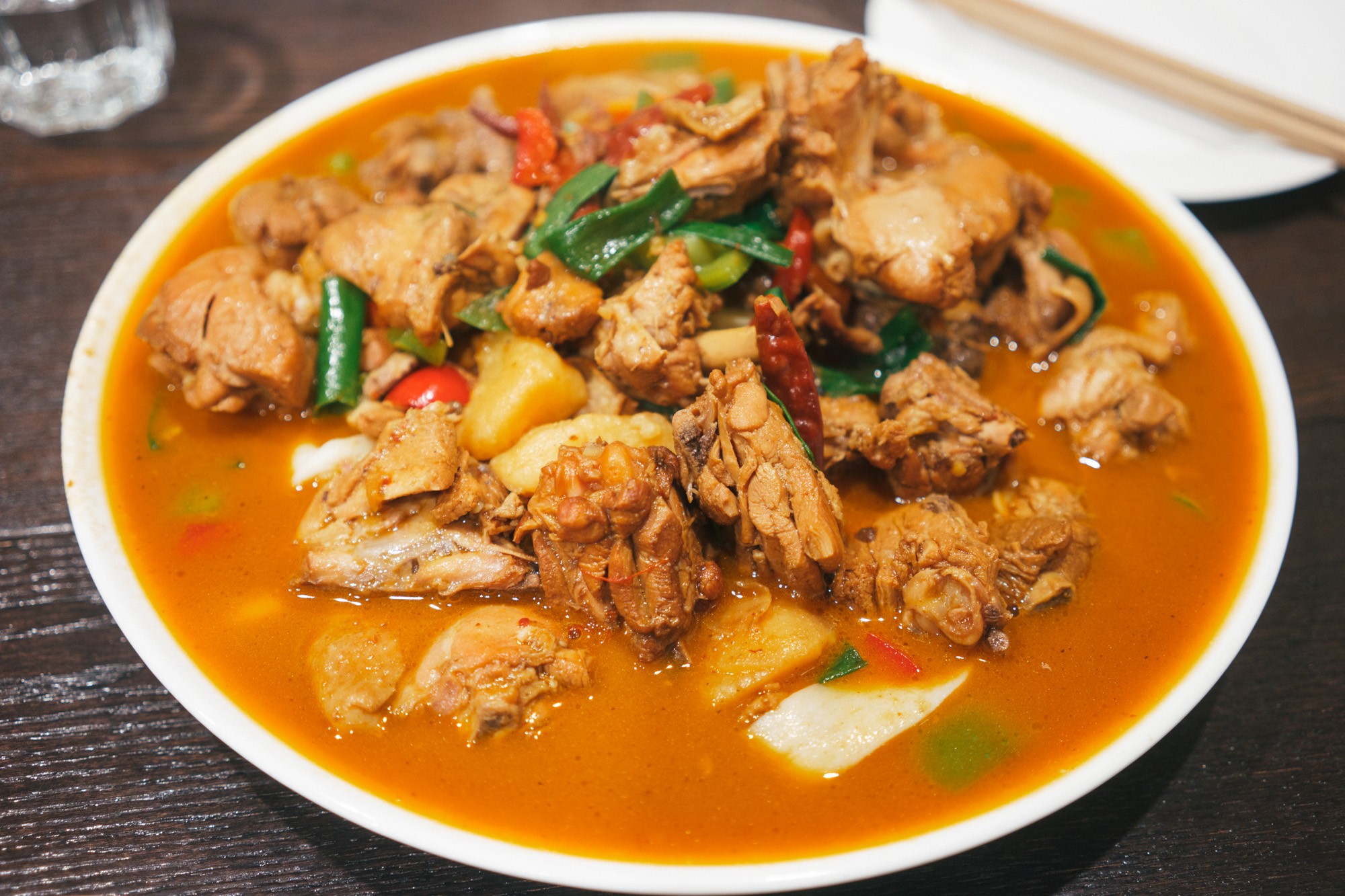 首先上来的是大盘鸡。卖相真的不错,一口下去😍我的天啊,怎么这么好吃?!鸡肉鲜嫩多汁自不必赘言,主要是调味,香料,土豆,青椒各种味道混合地恰到好处,让人既不会觉得香料味太重又或者说被土豆青椒吸去了太多味道导致整个东西偏淡。我可以说光凭这么一个菜,已经足以让我给这家店打4分以上,属于时不时都会想吃的东西。唯一可惜的是土豆和面条太少,如果可以土豆和面条可以再多一点的话就完美了。