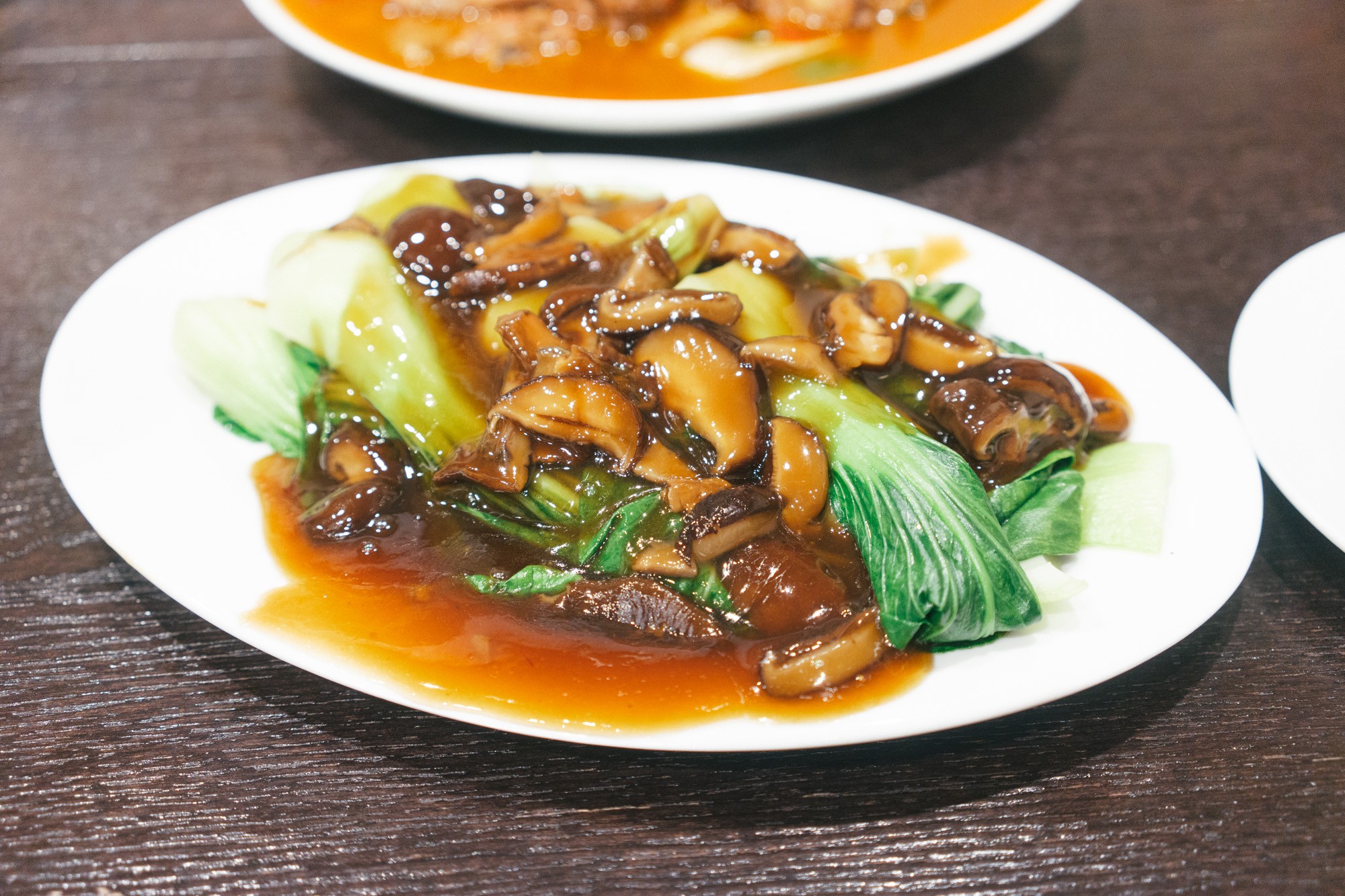 下面的几个是我点的比较失败的菜……首先是香菇菜心,纯粹是因为想给孩子吃所以点个口味清淡的东西,没有什么好说的…… 然后是蒜泥黄瓜。我本来对这个还是有些期待的,但是我这一盘明显调味不足。蒜味甚至都盖不住黄瓜味而且也不够咸。