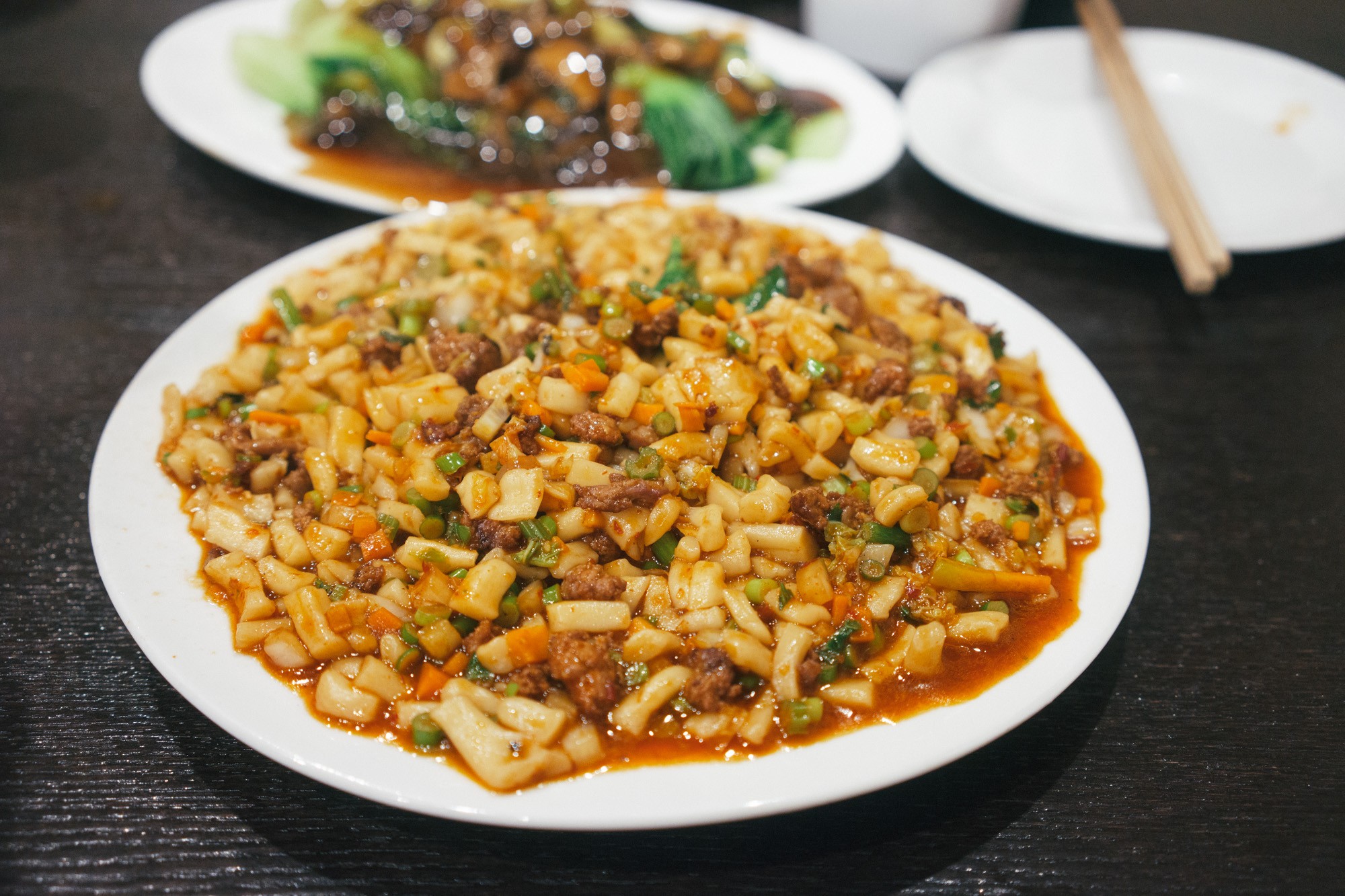 下面这个菜也是我去任何新疆餐厅都会点的丁丁炒面。不要小看了这个卖相一般的食物,它的味道并不比大盘鸡逊色甚至在某些意义上来说更加的开胃,因为它带着点番茄的酸味。这也是一个杀手级别的菜式,让人一吃难忘。🤩