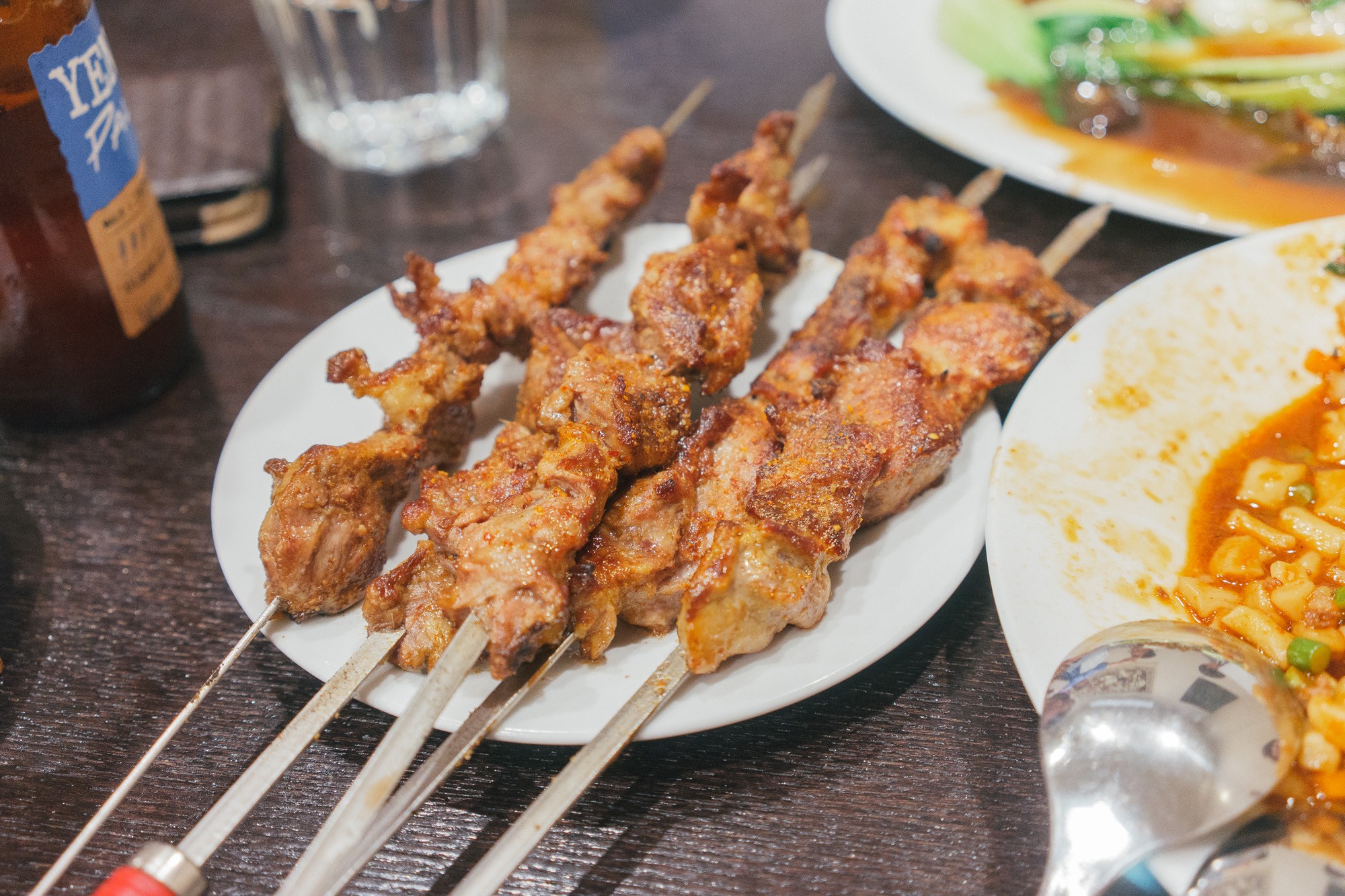 接下来是羊肉串。新疆人烤的羊肉串能不好吃吗?香气十足又肉质滑嫩。比较难得是它找到了肥肉和瘦肉比例的平衡点,不会像有些地方全是瘦肉,烤出来的肉质太柴,也不会像有些地方随意搭一块肥油在在上面一口下去只能吃到油……另外,也许是澳洲羊品种的问题,这边的羊肉的都不膻。
